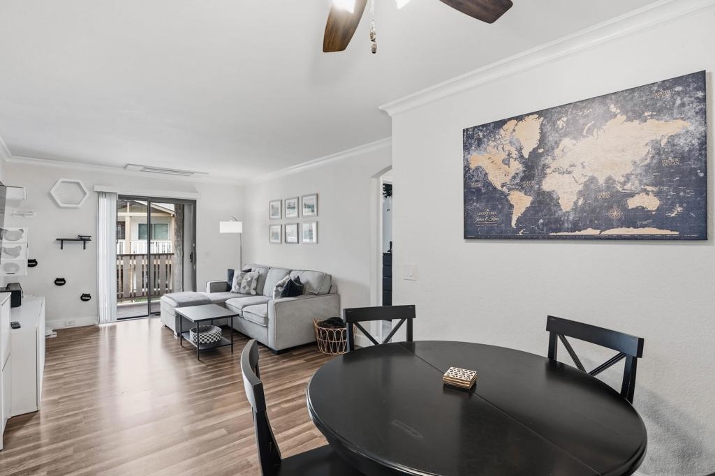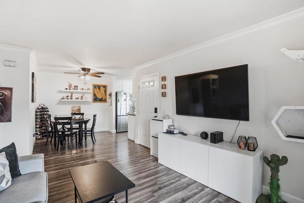 Don’t miss this opportunity to take over a beautiful top floor condo with a VA assumable loan in a quiet gated community. Offering 2 bedrooms, 1 bath, and just under 800 sq ft of bright and inviting living space, this home blends comfort and style with modern finishes from a recent renovation, in unit laundry, and a fully permitted AC system, one of only a few homes here with full air conditioning. Step onto your private balcony overlooking a peaceful green courtyard and enjoy the sense of calm throughout. The community offers resort style amenities including a pool, spa, fitness center, BBQ area, and two assigned parking spaces. Conveniently located just minutes from Target, Costco, and easy access to I-8 and 67. Call today to schedule your private tour, this one will not last.