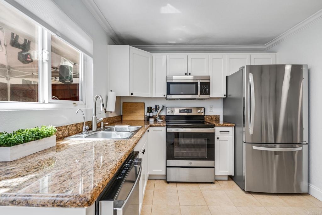 Welcome to El Cajon's gated gem! This 3-bed, 2-bath condo boasts modern upgraded paint, a stylish kitchen, and includes all stainless steel appliances. Enjoy the convenience of in-unit laundry, two assigned parking spaces directly in front of your unit and a nice patio area with turf. With low HOA fees, this home offers both luxury and practicality. Don't miss this rare opportunity for contemporary living in a well maintained gated community.