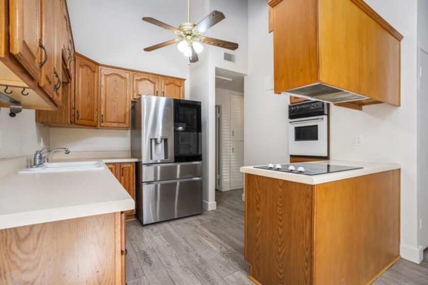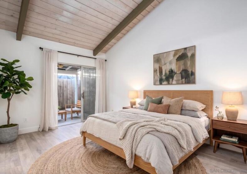 Welcome to 513 Shady Ln Unit B, a charming single-story condo located within a gated community in El Cajon. Tucked away at the end of a quiet cul-de-sac, this 2-bedroom, 2-bath home offers over 1,088 sq. ft. of comfortable, thoughtfully designed living space with added privacy and a peaceful setting. Inside, you’ll find luxury vinyl plank flooring throughout, soaring vaulted ceilings with exposed wood beams, and an abundance of natural light that creates a bright, open feel. The spacious layout seamlessly connects the living, dining, and kitchen areas—ideal for both everyday living and entertaining. Enjoy indoor-outdoor living with two private patio spaces—a welcoming front patio off the dining area and a serene rear patio accessible from the primary suite, perfect for relaxing or unwinding at the end of the day. Additional features include in-unit washer and dryer hookups with both interior and exterior options, generous storage, and an assigned covered carport with built-in shelving for added convenience. Located in a well-maintained gated community, this home offers a perfect blend of comfort, character, and convenience—an excellent opportunity for both homeowners and investors alike.