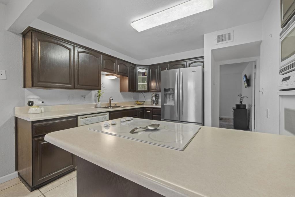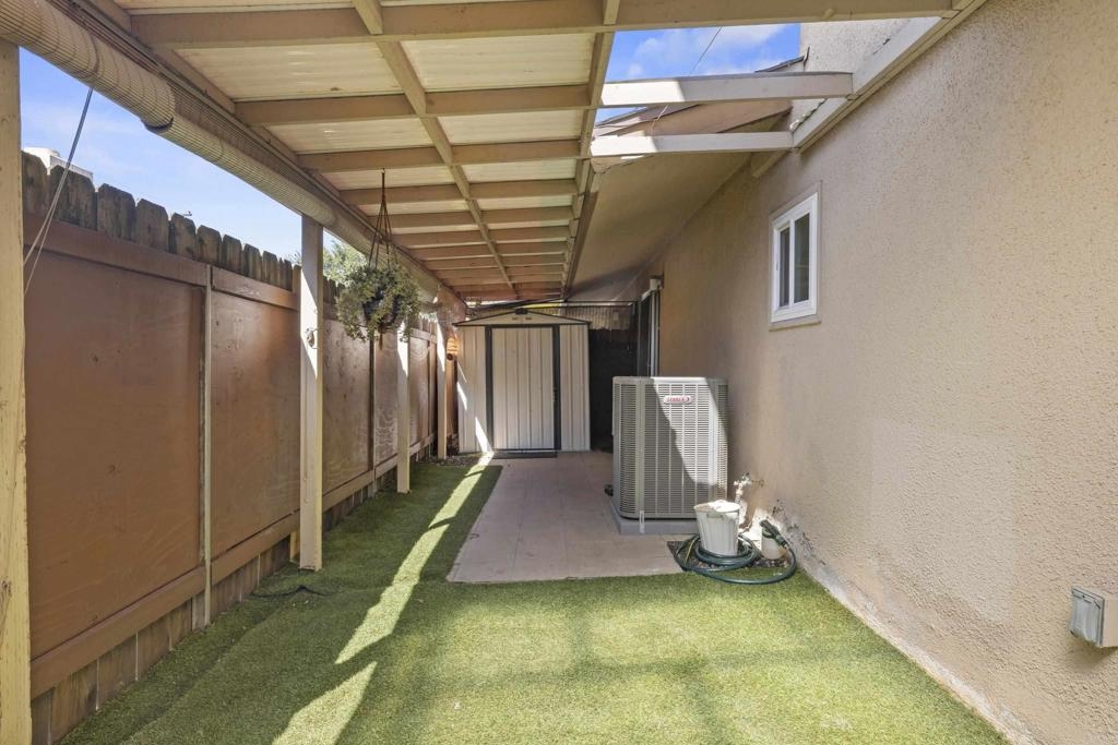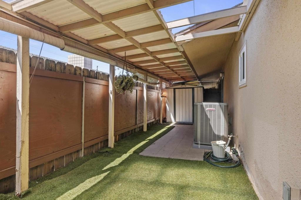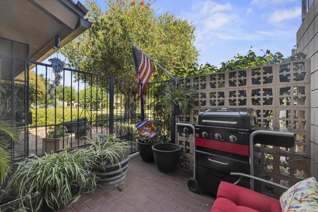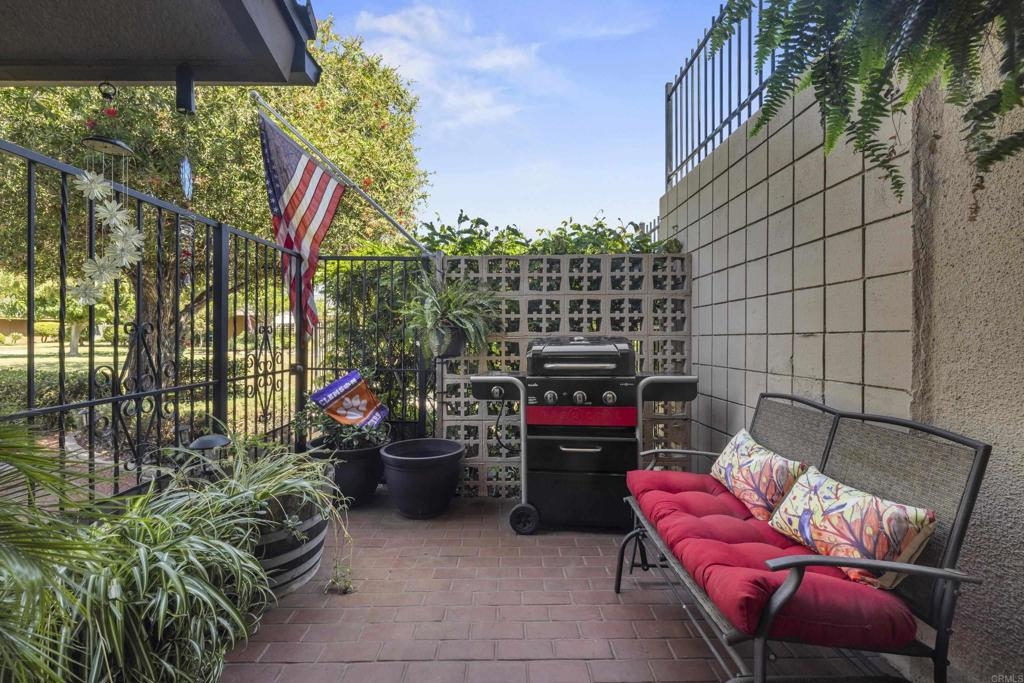 Come explore this amazing gated single story corner unit condo offering 2 bedrooms and 2 baths in the Barbara Terrace complex. This unit offers you a front and back patio with a storage shed. One of the few units that offers you TWO patios. Perfect for pets, BBQ's and entertaining. Spacious floor plan offering a large living room with fireplace, open kitchen with refinished cabinets, newer sink, SS refrigerator, and overlooks your dining room. Master bedroom is a great size with your own bathroom. Newer AC Unit, dual pane windows, and furnace. Covered assigned parking space with a personal size storage room with full size washer/dryer. This complex offers a pool and rec room in a park like setting. Centrally located to freeway, shopping, restaurants, and more!