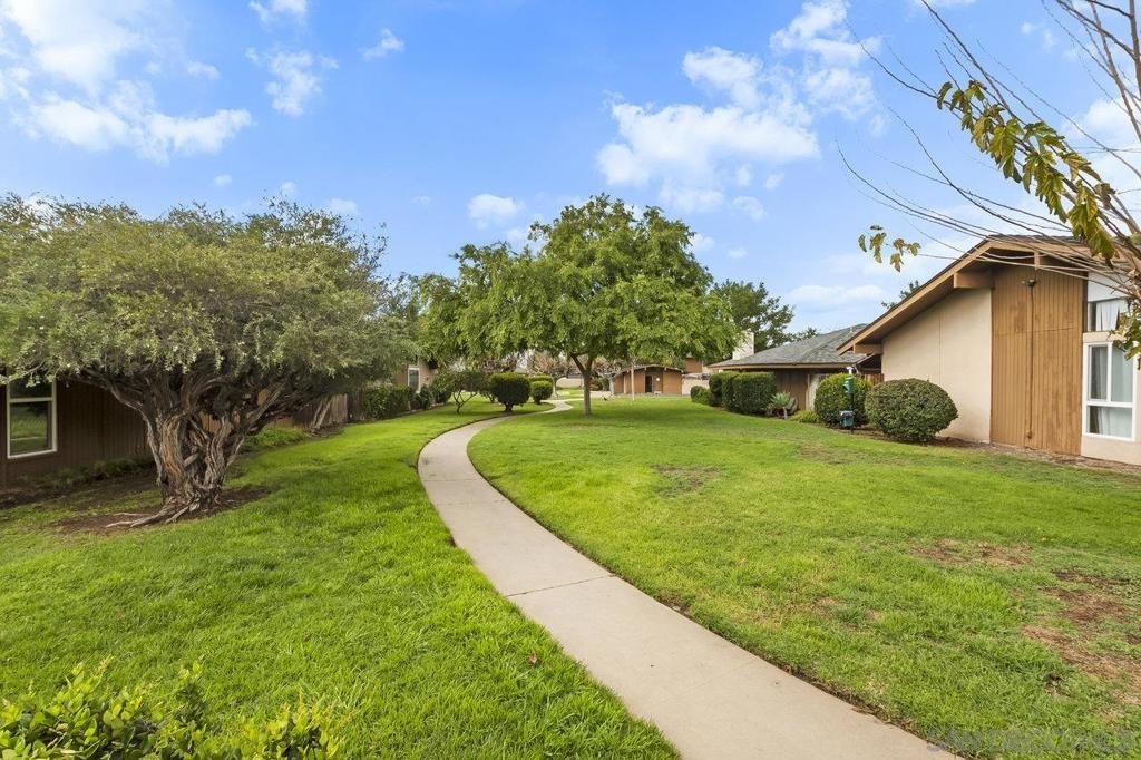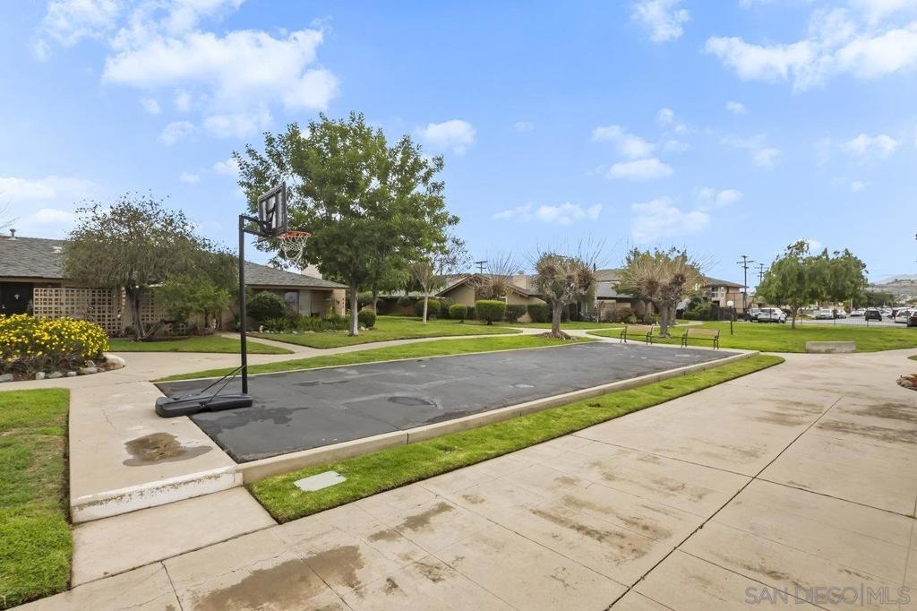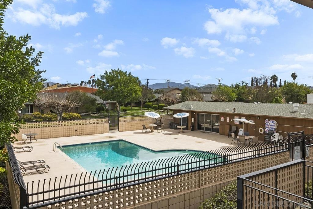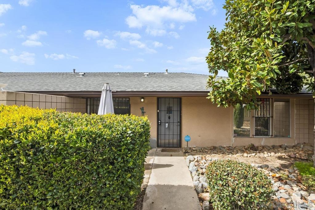 VA APPROVED COMPLEX. Single Story 2 Bedroom, 2 Full Bath End Unit with Central AC in a gated community. This Unit lives like a single-family home with only one shared wall & all living space on one floor. No one above or below! Open layout kitchen with eat in area + additional dining space. Spacious covered Patio with Washer & Dryer. Dual vanity sinks in both baths. Cozy fireplace. Includes an Assigned Carport with Storage closet. Complex features community Pool, clubhouse & basketball court. HOA Covers Water!