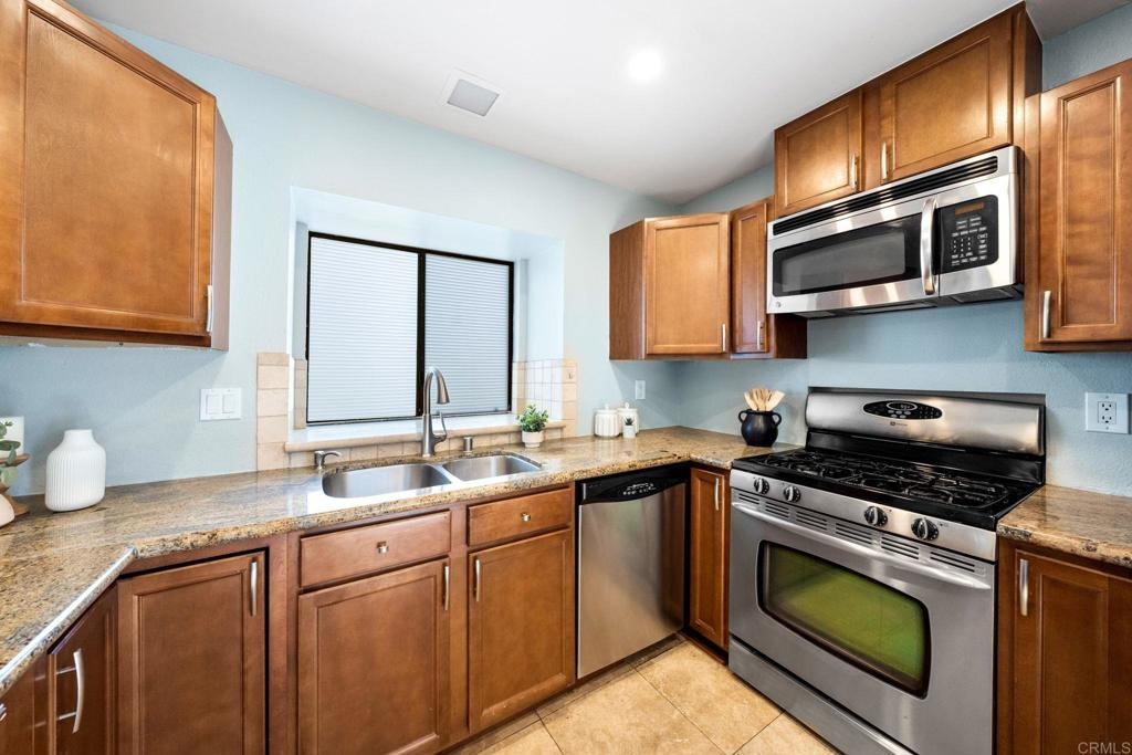 Welcome to this rarely available, beautifully upgraded 2 bed, 2 bath townhome nestled in a well-maintained community featuring a sparkling pool, relaxing spa, and HOA-covered water and trash for added convenience. This open-concept home boasts a spacious layout filled with natural light. The kitchen shines with granite countertops, stainless steel appliances, and a seamless flow into the living and dining areas—perfect for entertaining. Both bathrooms have been tastefully updated with modern finishes, offering a fresh, contemporary feel throughout. The large primary bedroom offers a peaceful retreat, complete with a generous walk-in closet and a private ensuite bathroom. Enjoy your morning coffee or evening unwind on your own private balcony, ideal for relaxing moments. With thoughtful upgrades, ample storage, and resort-style amenities, this move-in-ready townhome offers comfort, style, and low-maintenance living in a desirable community.