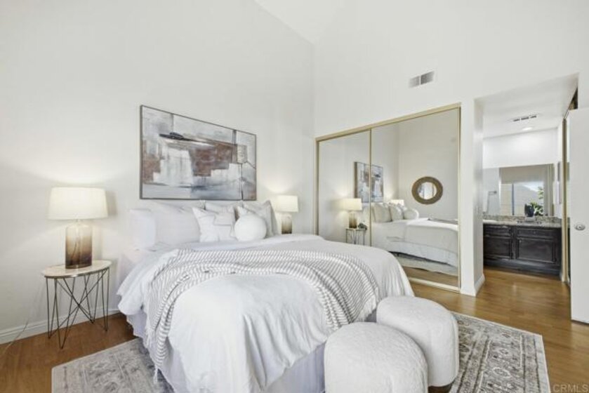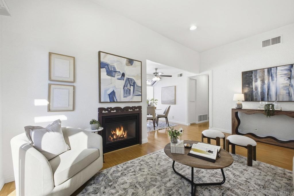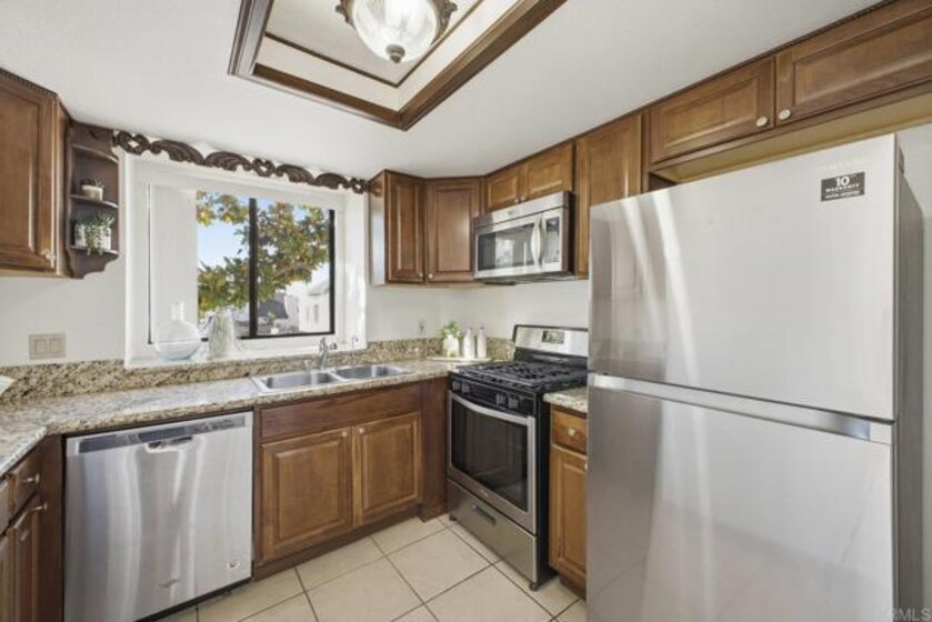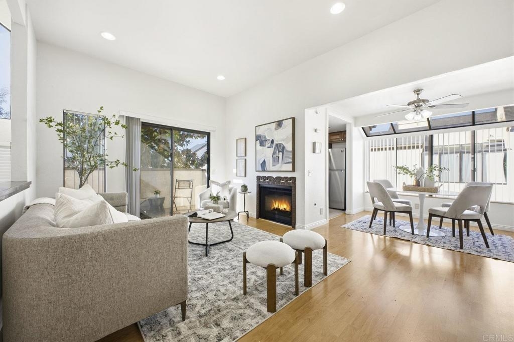 Welcome to this light and bright 2-bedroom, 2-bath corner unit located in the desirable Granite Hills community. This 1,087 sq ft condo features an open floor plan with high ceilings, wood flooring, and abundant natural light throughout. The kitchen offers stainless steel appliances and granite countertops, seamlessly connecting to the dining and living areas. Enjoy a private balcony perfect for relaxing or outdoor dining. Additional features include an attached garage with laundry, plus an extra parking space. The well-maintained community offers a pool for residents to enjoy. Ideally situated near parks, schools, shopping, and dining, this home provides both comfort and convenience in a sought-after location.