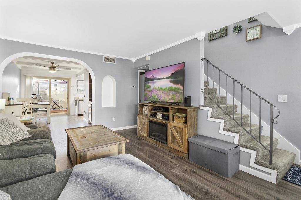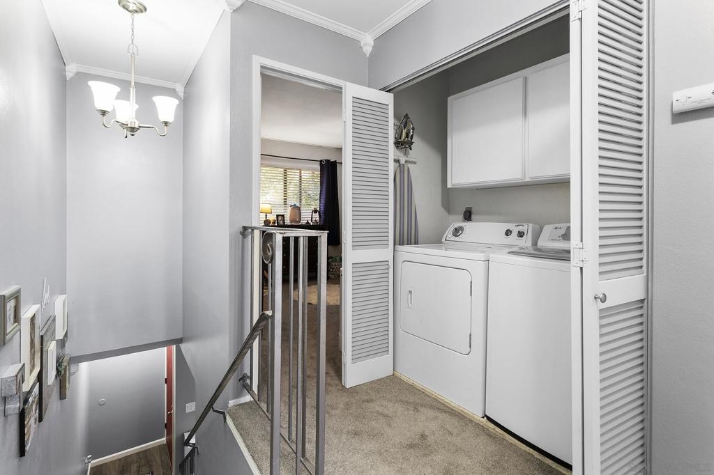 Rarely available 2 story townhome with 2 bedrooms, 1 full bath upstairs and 1/2 guest bath downstairs. This home has a spacious living room, updated wet-bar/coffee bar, crown molding throughout, freshly painted, tastefully updated, and a beautiful back patio. There is a 1 car garage and 1 assigned parking space. This community also has a wonderful pool area! Equipment: Dryer, Washer Other Fees: 0 Sewer: Public Sewer Topography: LL