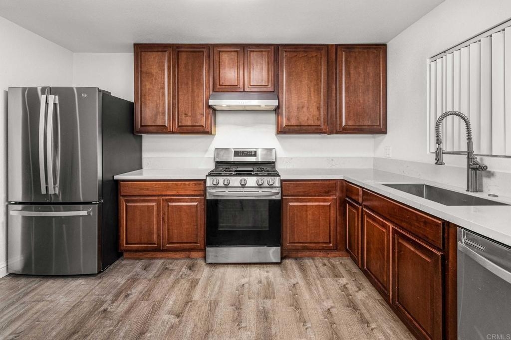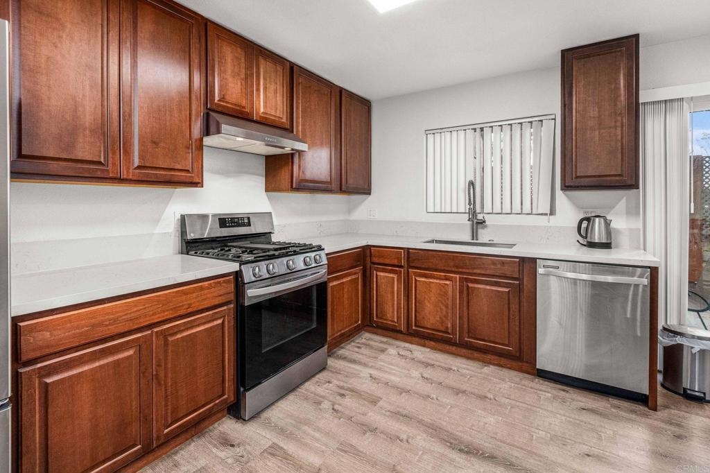 Completely remodeled end unit Townhouse with 2 beds and 2 1/2 bathrooms. All NEW appliances and washer and dryer. Upstairs bedrooms, each has its own full bathroom. Open concept high ceiling living room to the kitchen and dining room with half bathroom downstairs, Ceiling fans in each bedroom and dining room Dual pane windows and slide door. Property offers attached one car garage and plenty of street parking, Also New A/C and Water heater. Great location close to schools shopping centers and much more.