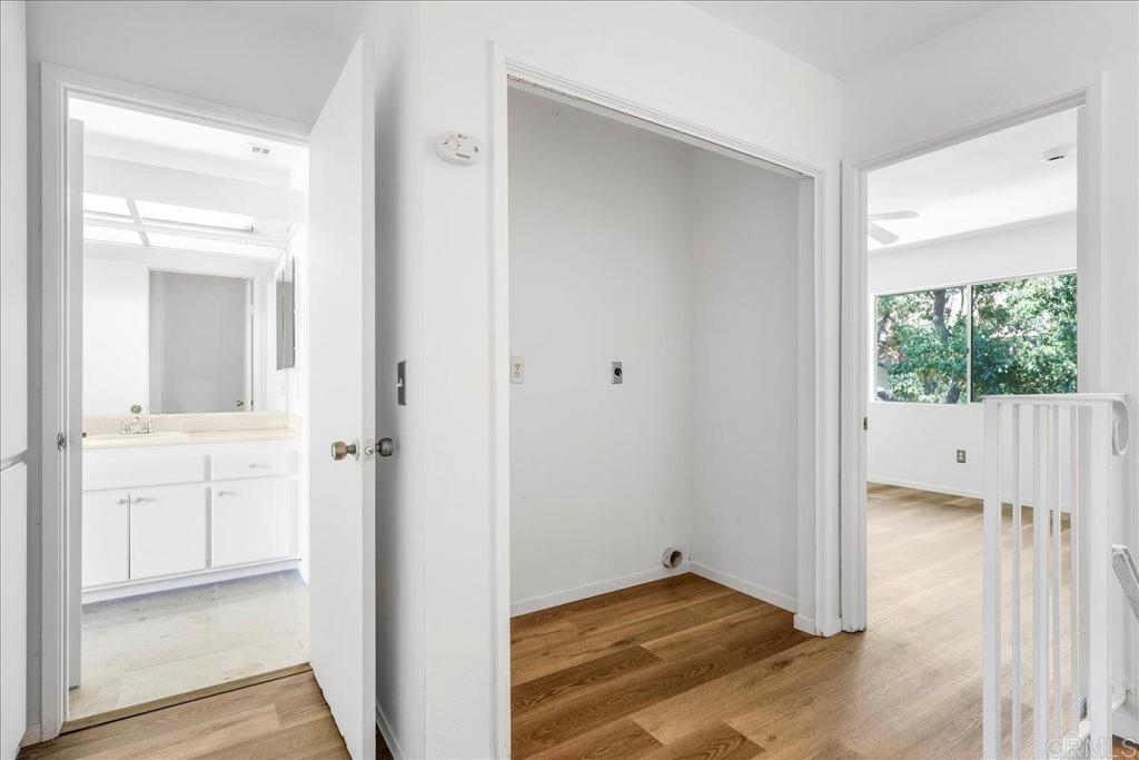 Talk about one beautiful property, it all starts at the end of this no-traffic culdesac that leads you into a park. These pine trees are taller than most in the national park! The forest entry opens up to a brand new wood-toned LPV flooring that is gorgeous. Featuring one bathroom down stairs and a Jack and Jill type bathroom upstairs, this freshly painted unit is clean and new looking. Then there is the gated backyard with a storage closet. Did we mention the indoor washer and dryer room that accomodates full sized appliances? Yes there is a detached fully enclosed oversized one-car garage plus a second dedicated space. Oh, yes - a very nice pool to wind down an otherwise scorching day!