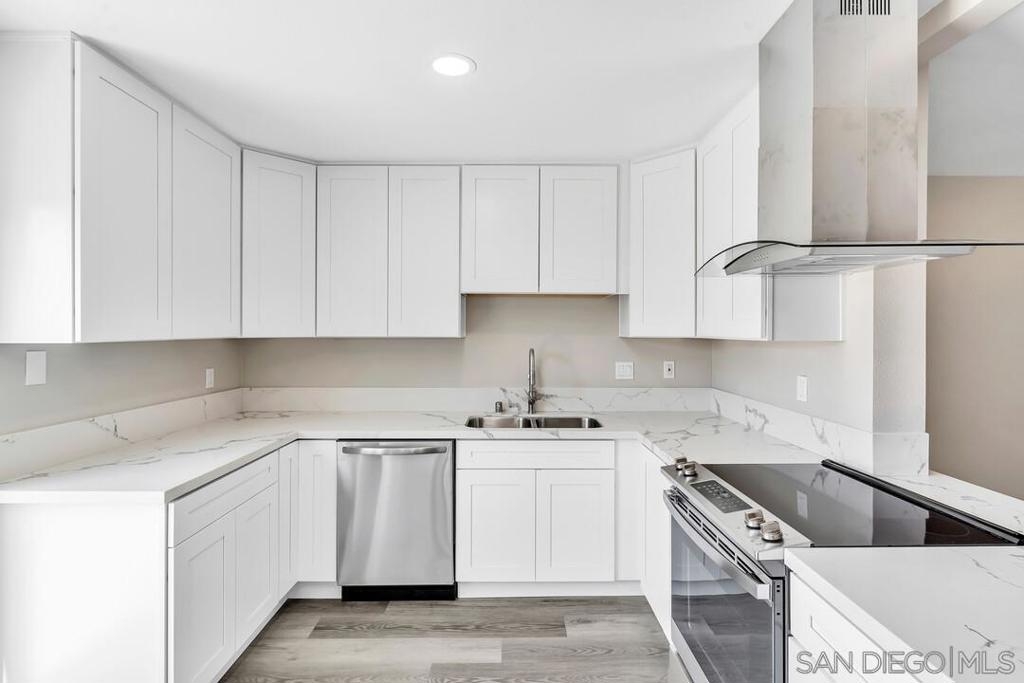 Beautiful TURN-KEY - END UNIT condo in the heart of El Cajon! Welcome to the quaint gated community of Cherrywood Park. This recently upgraded unit features a fully renovated kitchen with all new cabinets, recessed lighting, quartz counters and brand new appliances. New vinyl plank flooring flows through out the downstairs & wood upstairs. The primary bedroom boasts a walk in closet and private balcony. New vanities & fixtures complete both bathrooms. Other great features of this corner unit are: Freshly painted interior, dual pane windows, only 1 common shared wall, carport parking space with storage lockers & in unit FULL sized laundry. Centrally located close to major shopping center, freeways and schools. Hurry - this one wont last long!
