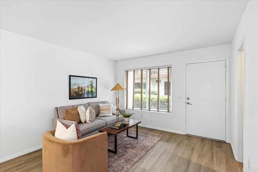 PRICE IMPROVEMENT! Darling 2 bedroom condo is not new, but there is a lot of "new" in it! ALL NEWER 1/2 BATH, ALL NEW LAMINATE FLOORS, ALL NEW KITCHEN COUNTERTOPS, NEW KITCHEN SINK AND FAUCET, UPDATED DECK, NEW INTERIOR PAINT, NEW LIGHTING, ....it's a new look all around! It also has an inside laundry, which is a "must", A/C, another "must" in California, and it is located near the pool. Another PLUS is your own private patio with just enough dirt to be dangerous, but also plenty of room for the BBQ here for outdoor entertaining and dining. And speaking of location, walk just outside your gated community and restaurants and commerce await you on every corner. (The famous Yogurt Mill is dangerously close!!!) Plus if you need to hop on the freeway, the "67" is one block away, and how convenient is that? Actual staging gives you the best idea on how to decorate the space, so bring your furniture and suitcase, and call 888 Cherrywood #20 your new home!
