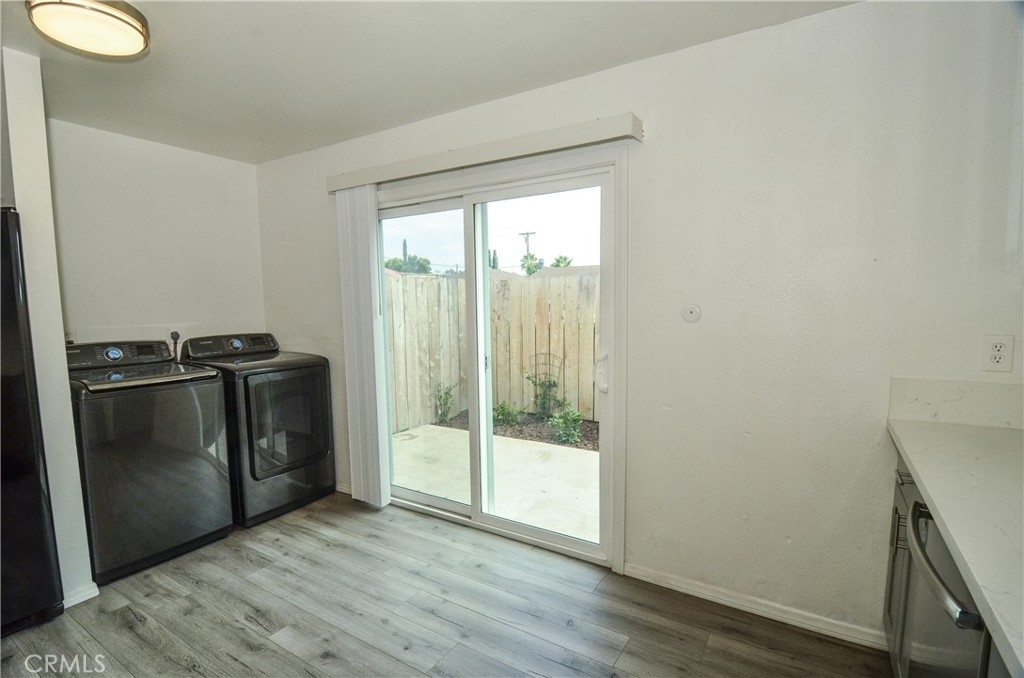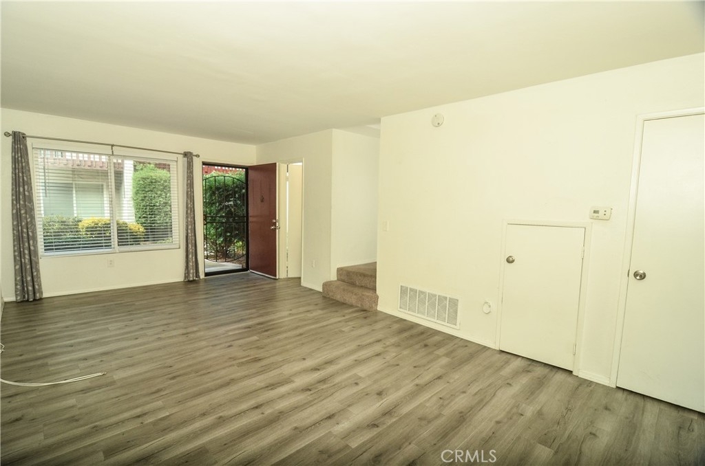 This is a great place to call home or your next investment. Entry leads to spacious living room with powder room at the left and wood laminate flooring and a pass through window to kitchen. ~~~ There is storage space underneath the carpeted stairs right before the kitchen. LEVEL BATHROOM. The kitchen is inviting with SOFT CLOSED SHAKER CABINETS and DRAWERS and QUARTZ COUNTERS to create your favorite meals on the STOVE that remains. Put your leftovers in the REFRIGERATOR then wash up the dishes in the DISHWASHER. ~~~ No need to go to the laundromat when you have space for your own laundry in the kitchen. DOUBLE PANE windows and sliders help keep this place energy efficient. ~~~ Step out to your concrete patio to barbecue, relax or if you have fur babies then let them relieve themselves. :) ~~~ The upstairs bathroom is among the updates in this condo to accommodate the two bedrooms upstairs with newly installed CEILING FANS and plenty of room in the closets with mirrored closet doors and one bedroom with a balcony. ~~~ When you want to cool off, enjoy the community swimming pool. ~~~ There is storage space at the carport: perfect for rarely used items. Come see why this may be one for you or someone you know. ~~~ See it! Love it! Buy it! ~~~ *** Added Note: New A/C. Newly painted. Close proximity down the street to popular stores and restaurants. Convenient for you!