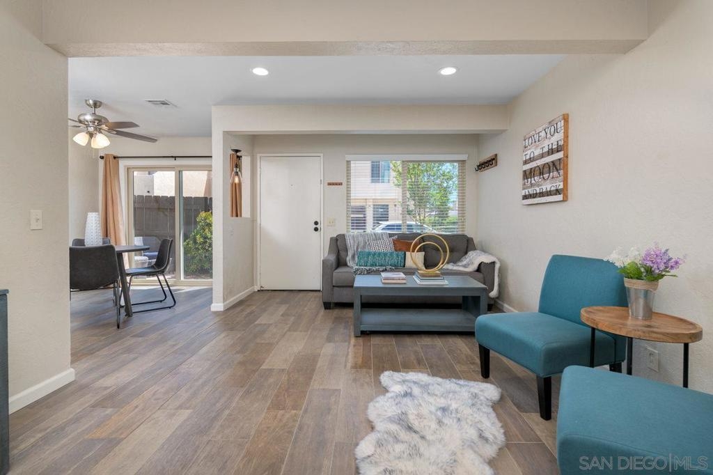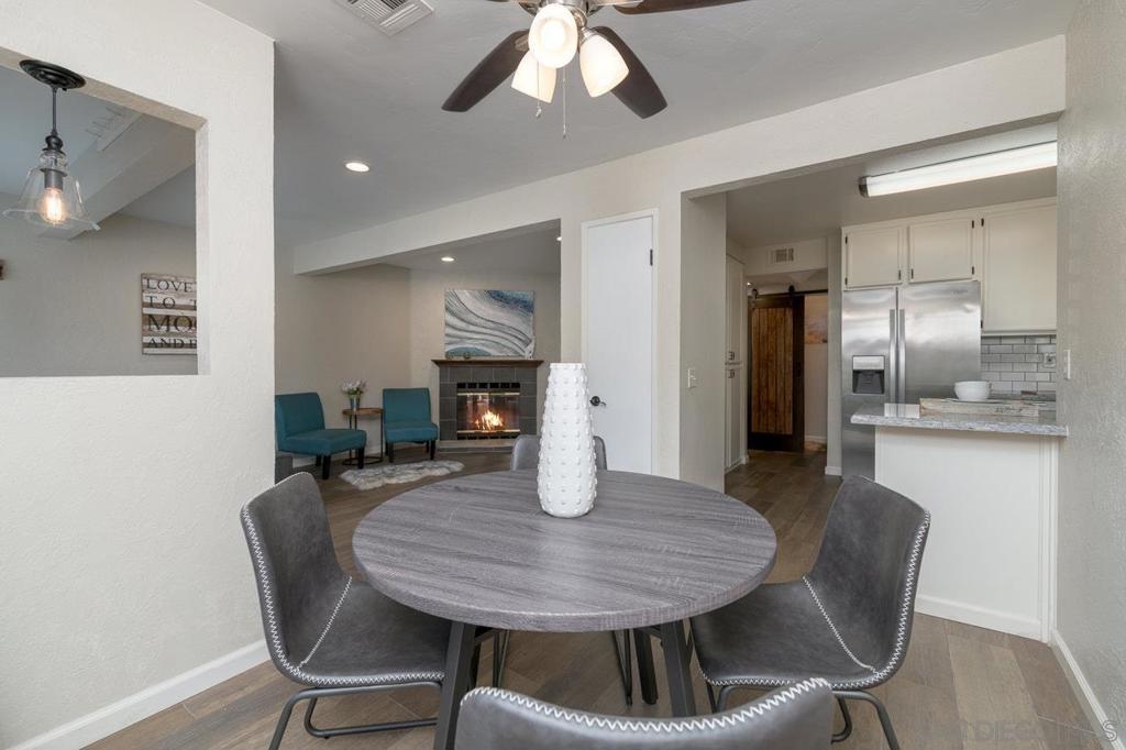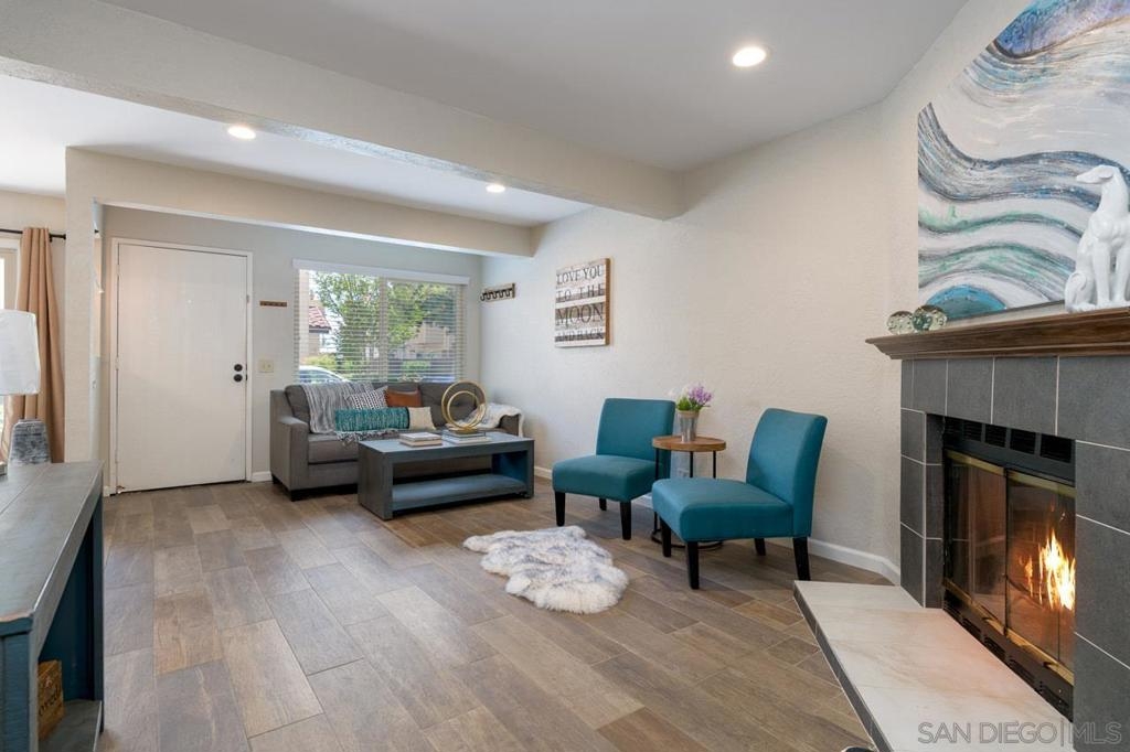 This light and bright townhome in El Cajon is a must see! The spacious 2 bedroom, 2.5 bathroom has an attached oversized 1 car finished garage with epoxy floors. Unit boasts ceramic tile floors throughout downstairs, dual paned windows, central heating & air, recessed lighting, upgraded kitchen with stainless steel appliances, gas cooking, granite countertops and subway tile backsplash. Laundry closet located on lower level with full size washer/dryer along with half bathroom, perfect for guests. Both bedrooms are upstairs along with two bathrooms. Large primary bedroom suite has vaulted ceilings and ceiling fan with upgraded bathroom. VA approved! Unit has 1 additional assigned parking space, and a private enclosed patio. Corsica offers community pool, tennis courts, and is walkable to restaurants, grocery stores, and shopping! HOA offers additional parking for RVs, trailers, and boats at an additional cost to HOA. Complex Features: ,,, Equipment: Dryer, Range/Oven, Washer Sewer: Sewer Connected Topography: LL