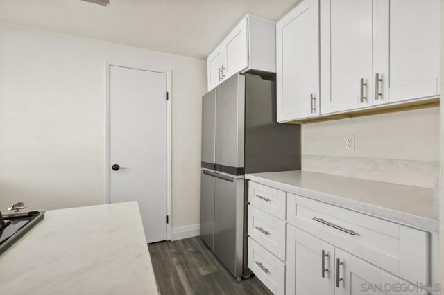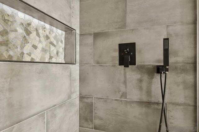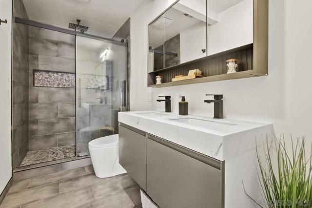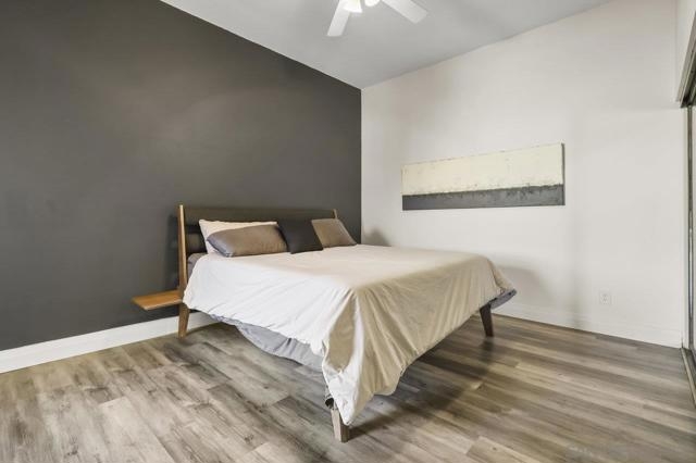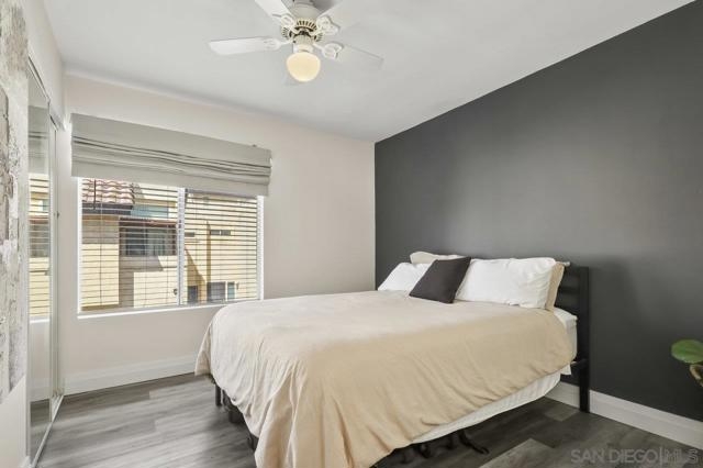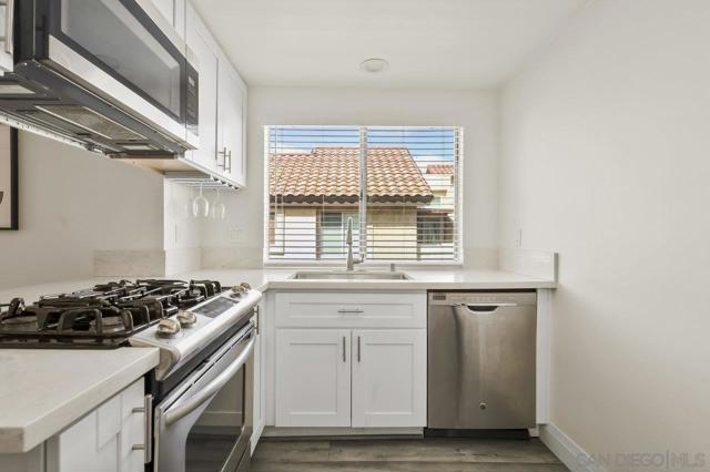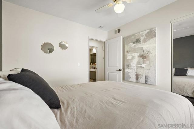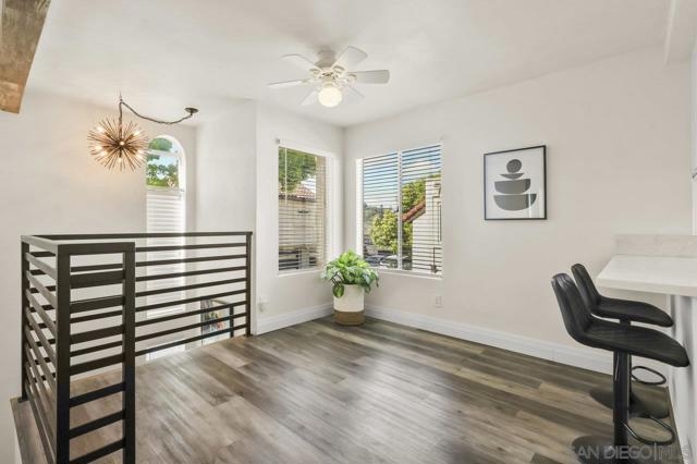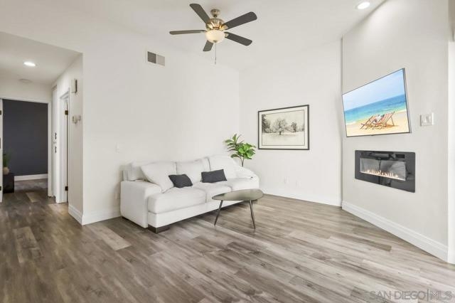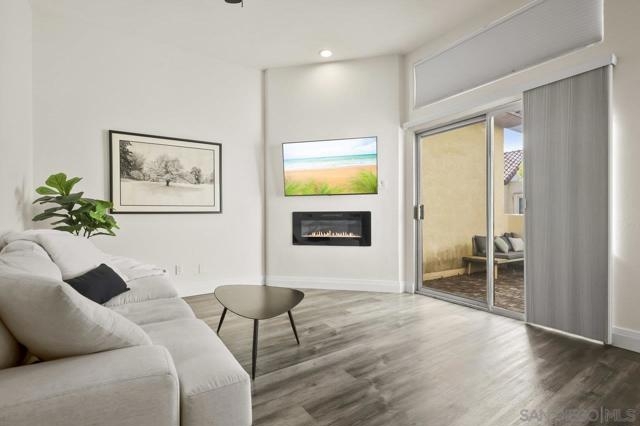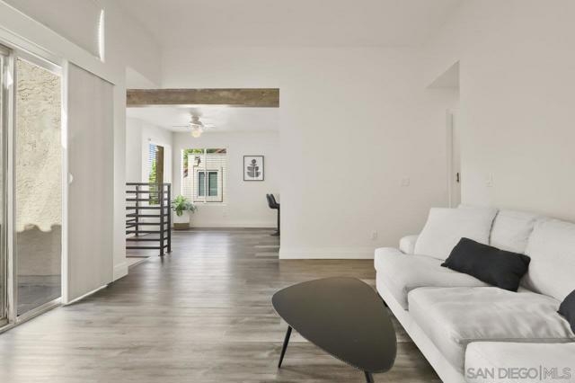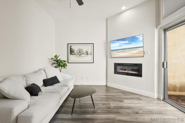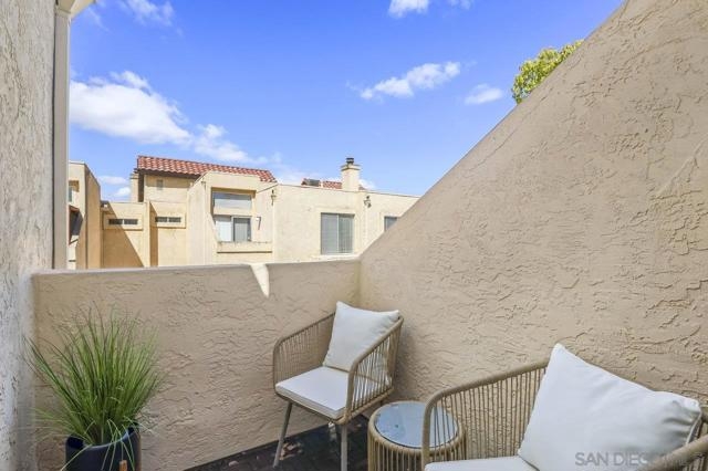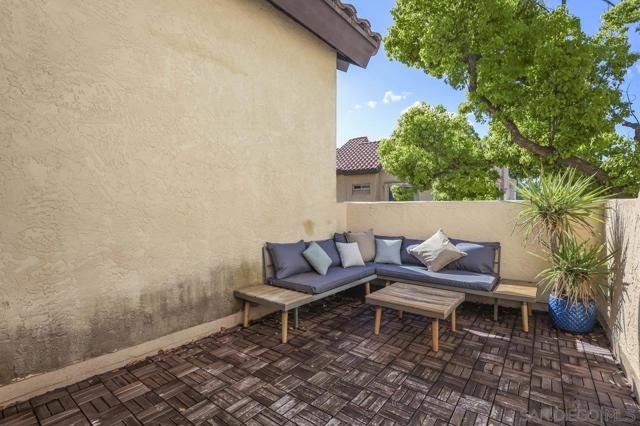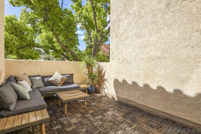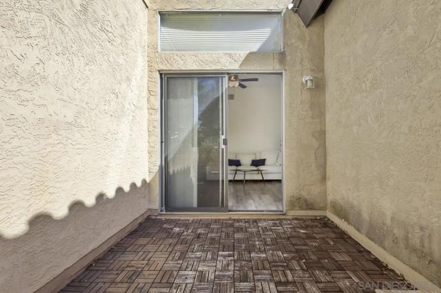 Welcome home! This 2-bedroom, 1-bathroom townhome has been meticulously upgraded with attention to detail. This looks like a model home! This 2-story end unit has no one above or below. The attached one car smart garage has custom epoxy flooring. There is also one additional parking space outside which can easily accommodate a large vehicle. Walking upstairs you’ll notice a custom metal railing and find a spacious modern living room with vaulted ceilings, soft grey luxury vinyl flooring throughout, and an electric mounted fireplace. In the kitchen you have quartz countertops, stainless steel appliances, and a large breakfast bar. The patio featured to the front offers raised acacia wood plank flooring. This large area is perfect for entertaining guest or just relaxing on a warm evening. All of the shades are custom from the living room to the bedroom. They’re amazing! As you head toward the bathroom you’ll notice it’s been completely redone with matching modern finishes like the rest of the home. You’ll have huge rainfall shower with porcelain tile, dual sinks, and floating cabinetry which make you feel like you’re in a spa. The main bedroom is gigantic with vaulted ceilings, a custom closet, and has its own private balcony, again with raised acacia wood plank flooring. A perfect spot to relax morning or night. Enjoy the tennis court and take a refreshing swim in the community pool or just soak in the jacuzzi. Conveniently located near the Interstate 8 makes an easy commute anywhere in the San Diego area. Come check this one out because this will not be on the market long!