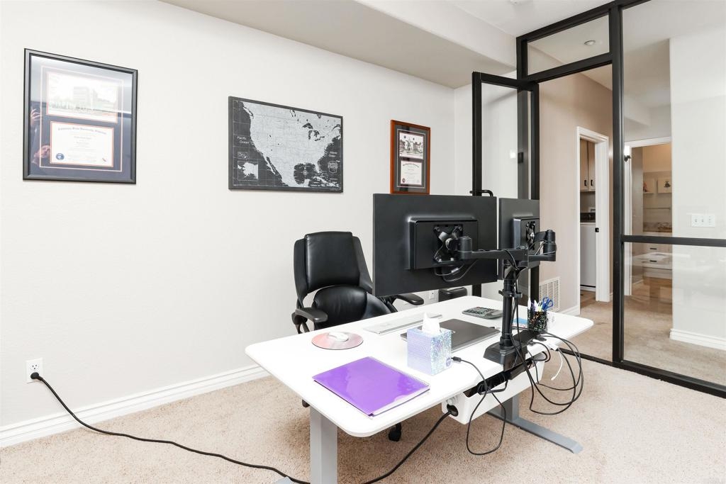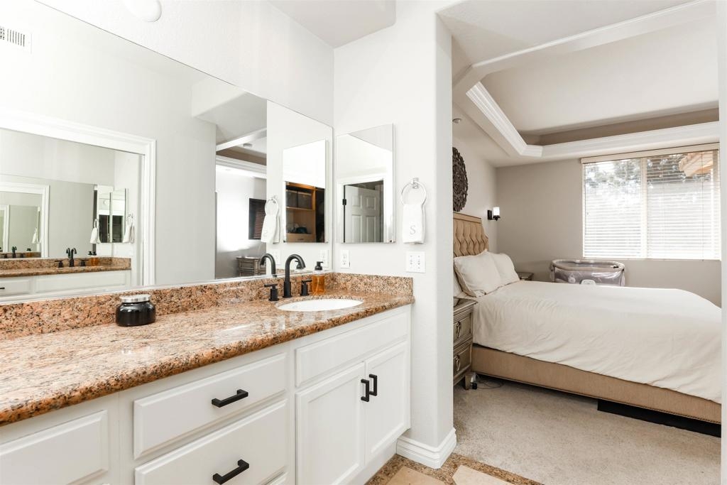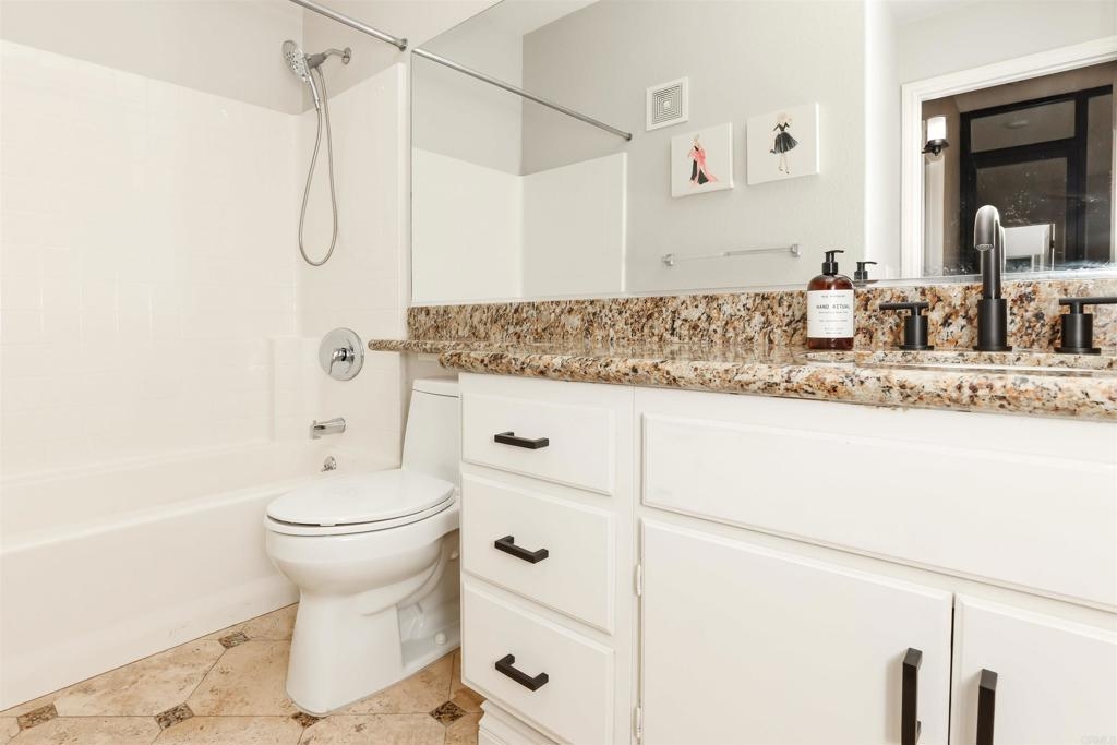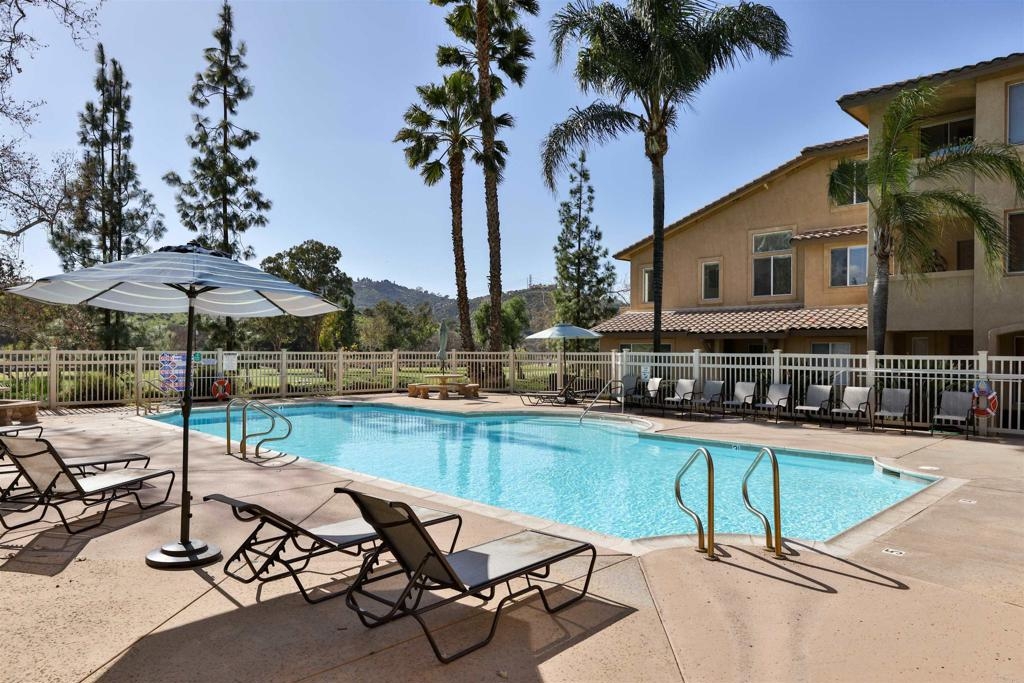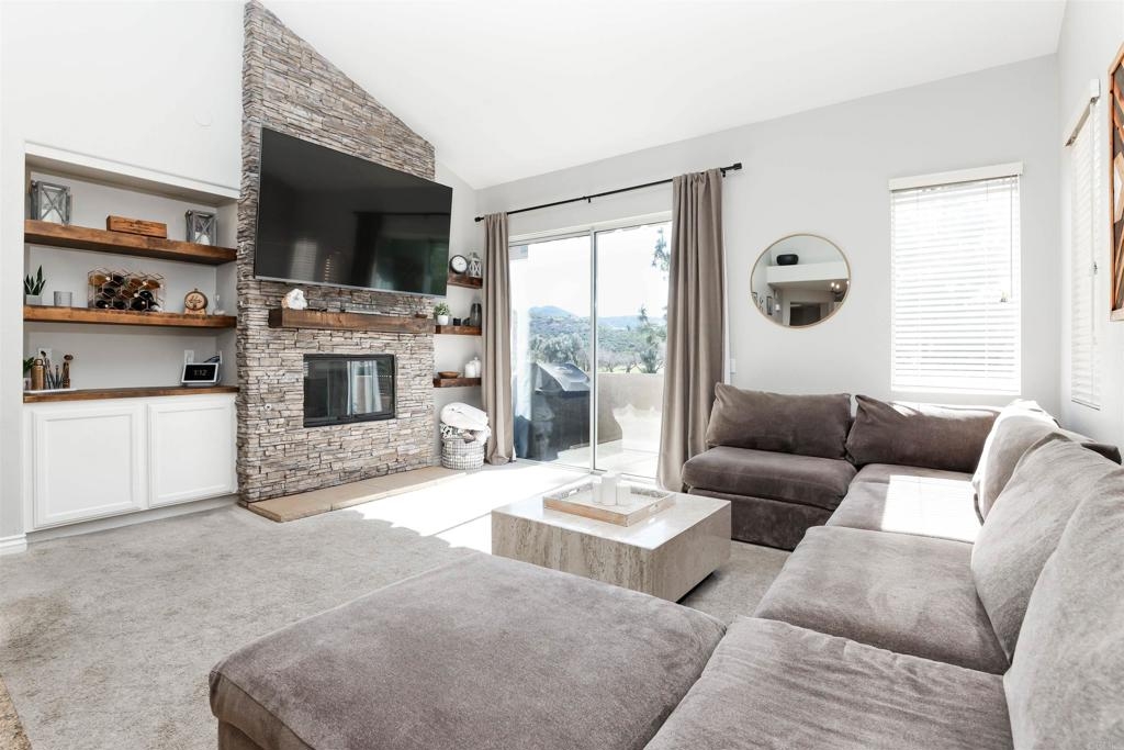 Move in ready condo in the Fairway Villas complex situated just off the 10th hole of Oak at Sycuan Golf course. Attached single car extra deep garage with storage. Vaulted ceilings with lots of natural light. The best floor plan in the complex and close proximity to the pool and guest parking. This place has been updated throughout for that modern-ish feel. Views of the golf course are amazing. Primary bedroom suite is complete with tray ceilings, romantic lighting, dual vanity, and walk-in closet. Upstairs loft has been converted to an awesome at home office with heavy gauge glass and threshold door. Perfect for a work from home situation or use it as the third bedroom. Living room is complemented by floor to ceiling fireplace stone veneer, built-ins and rustic wood floating shelves. Kitchen offers stainless steel appliances, granite counters and white cabinets contrasted with matte black hardware.
