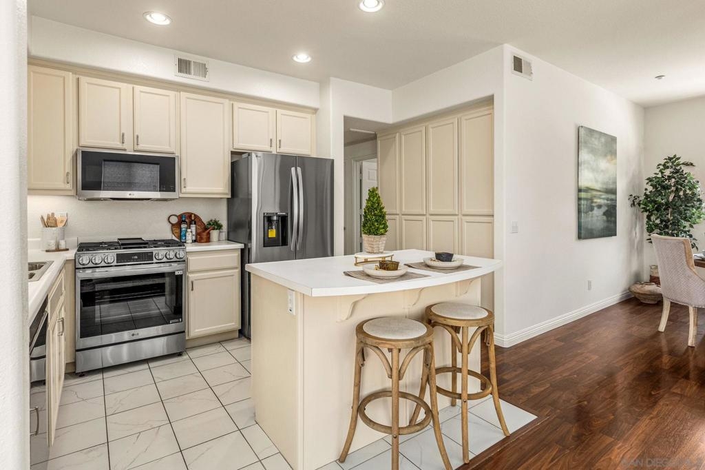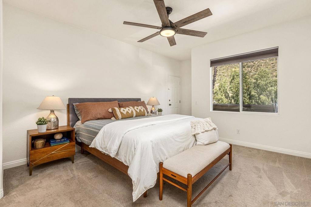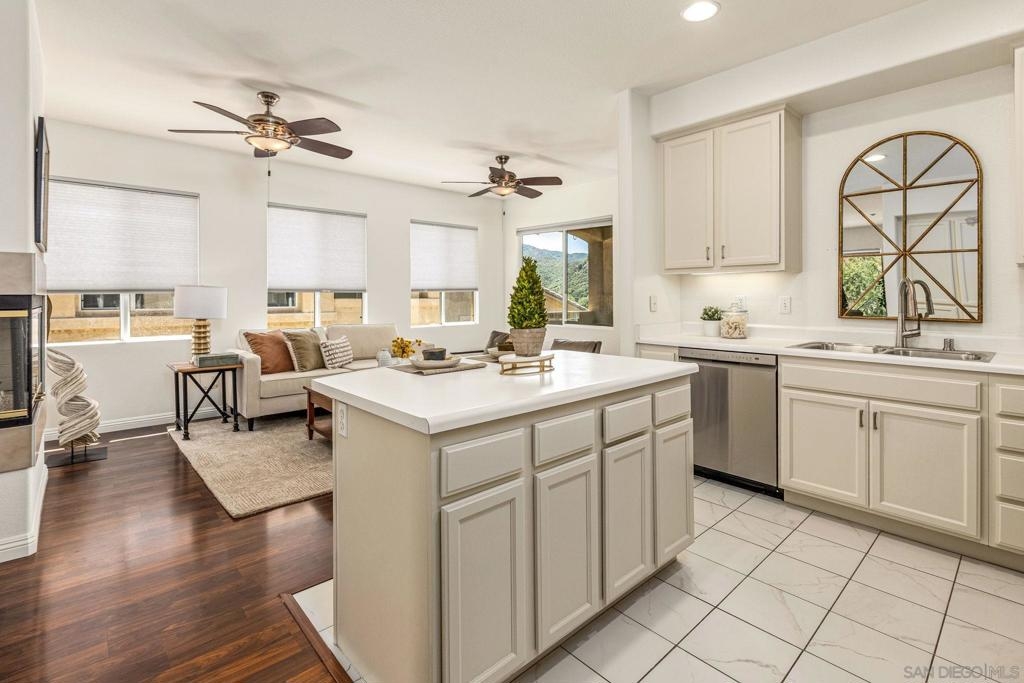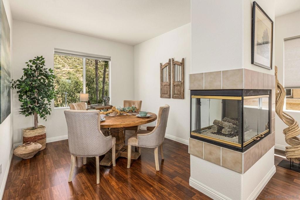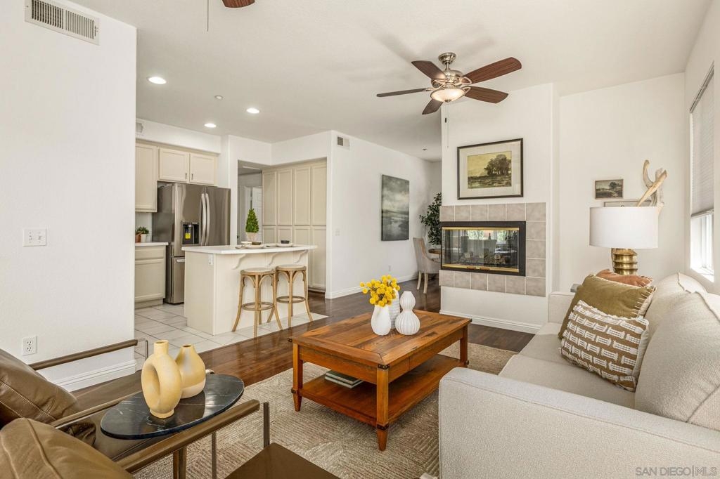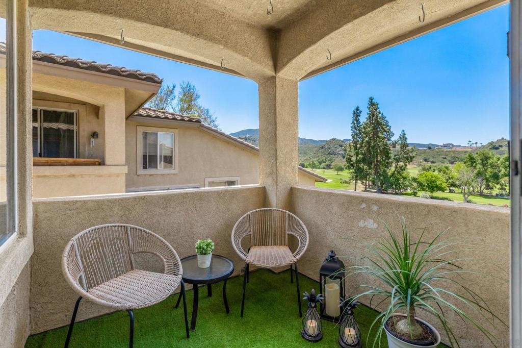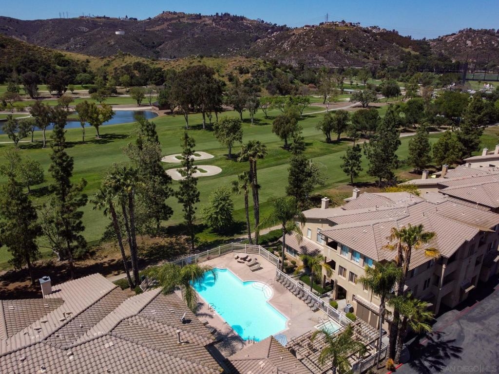 Experience luxury living with picturesque mountain and golf course views from this top-floor condo in the gated Fairway Villas community, located adjacent to Singing Hills Golf Course. The peaceful, light-filled residence offers a spacious open layout with raised ceilings, custom blinds, ceiling fans, and a dual-sided fireplace. Living room windows and a private balcony frame the stunning natural surroundings, creating a serene and inviting atmosphere. The stylish kitchen features an island, brand-new top-of-the-line stainless steel appliances, and ample cabinetry perfect for everyday living and entertaining. The private bedroom suite includes tree-top views, a large walk-in closet, and a spacious bath with dual sinks. Additional highlights include a private laundry closet, outdoor storage, two assigned parking spaces, guest parking, and access to a community pool and spa. Despite the private and quiet country-like setting, you’re just minutes from Rancho San Diego shopping centers, schools, parks, Sycuan Casino, and major freeways for easy access across the region.