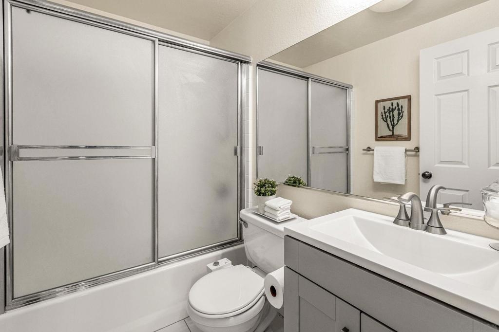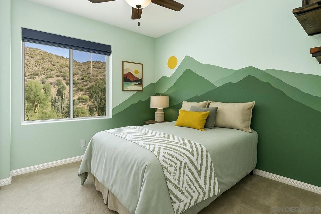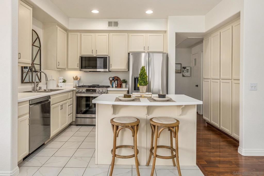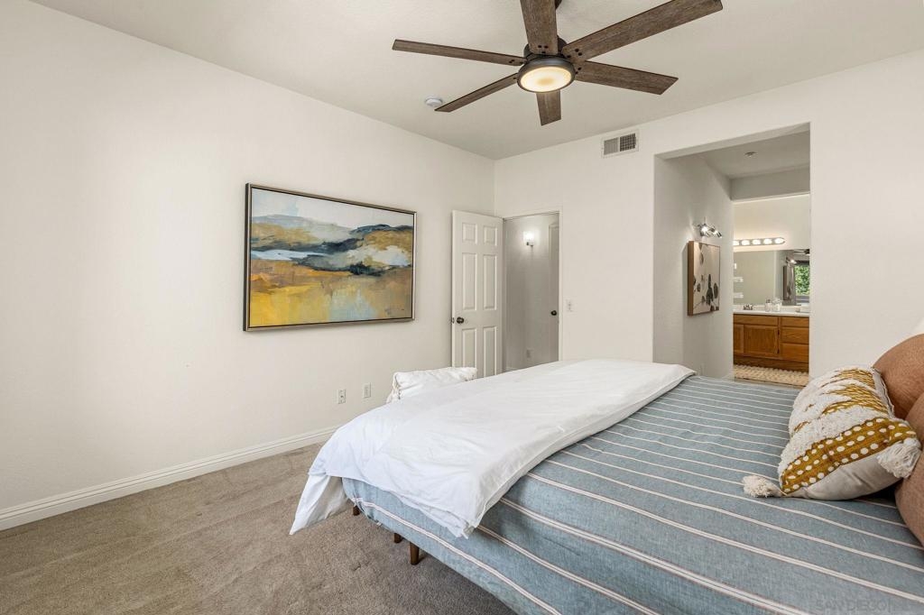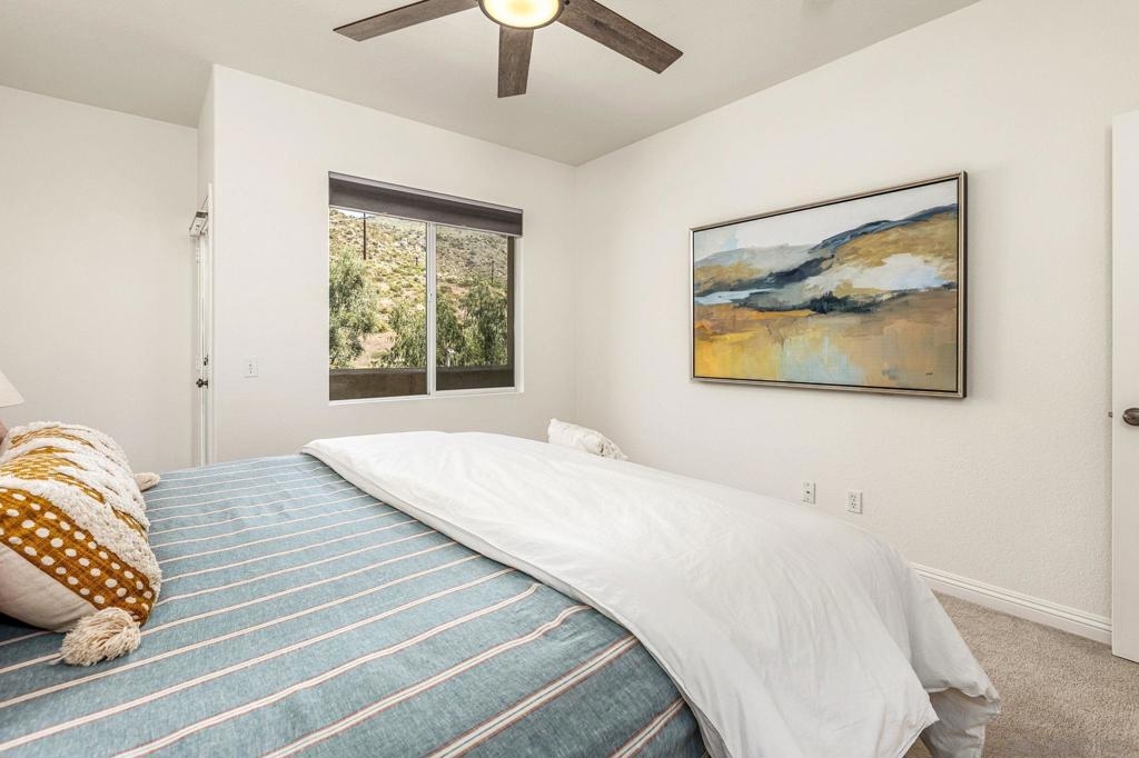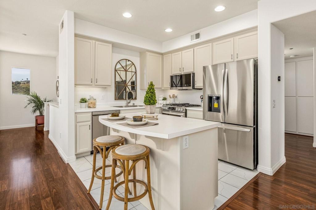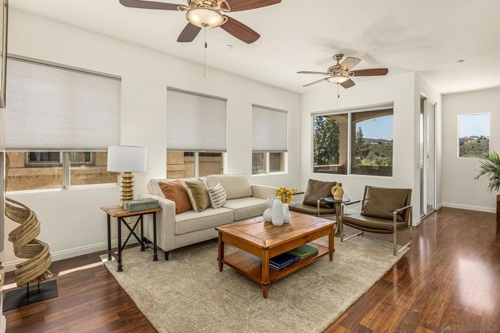 Experience luxury living with picturesque mountain and golf course views from this top-floor condo in the gated Fairway Villas community, located adjacent to Singing Hills Golf Course. The peaceful, light-filled residence offers a spacious open layout with raised ceilings, custom blinds, ceiling fans, and a dual-sided fireplace. Living room windows and a private balcony frame the stunning natural surroundings, creating a serene and inviting atmosphere. The stylish kitchen features an island, brand-new top-of-the-line stainless steel appliances, and ample cabinetry perfect for everyday living and entertaining. The private bedroom suite includes tree-top views, a large walk-in closet, and a spacious bath with dual sinks. Additional highlights include a private laundry closet, outdoor storage, two assigned parking spaces, guest parking, and access to a community pool and spa. Despite the private and quiet country-like setting, you’re just minutes from Rancho San Diego shopping centers, schools, parks, Sycuan Casino, and major freeways for easy access across the region.