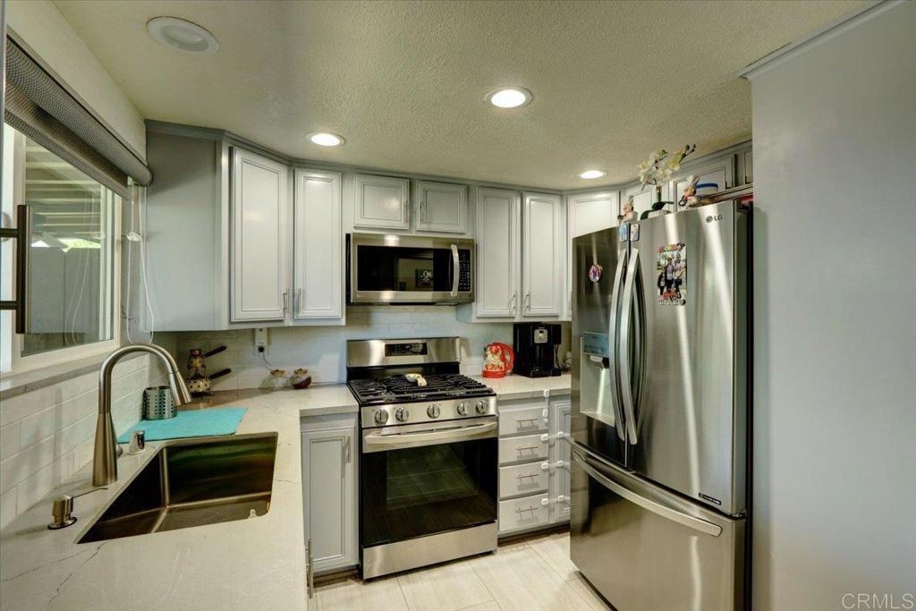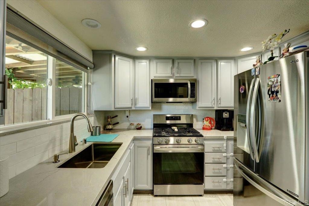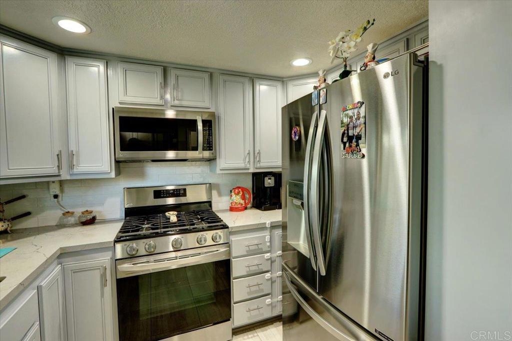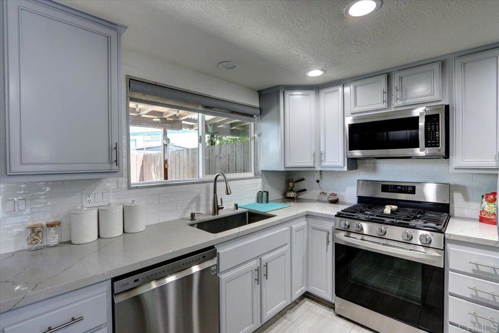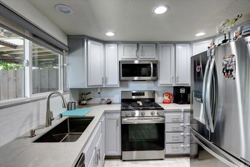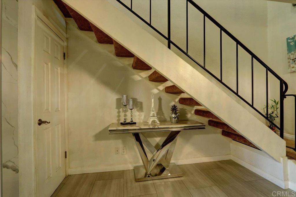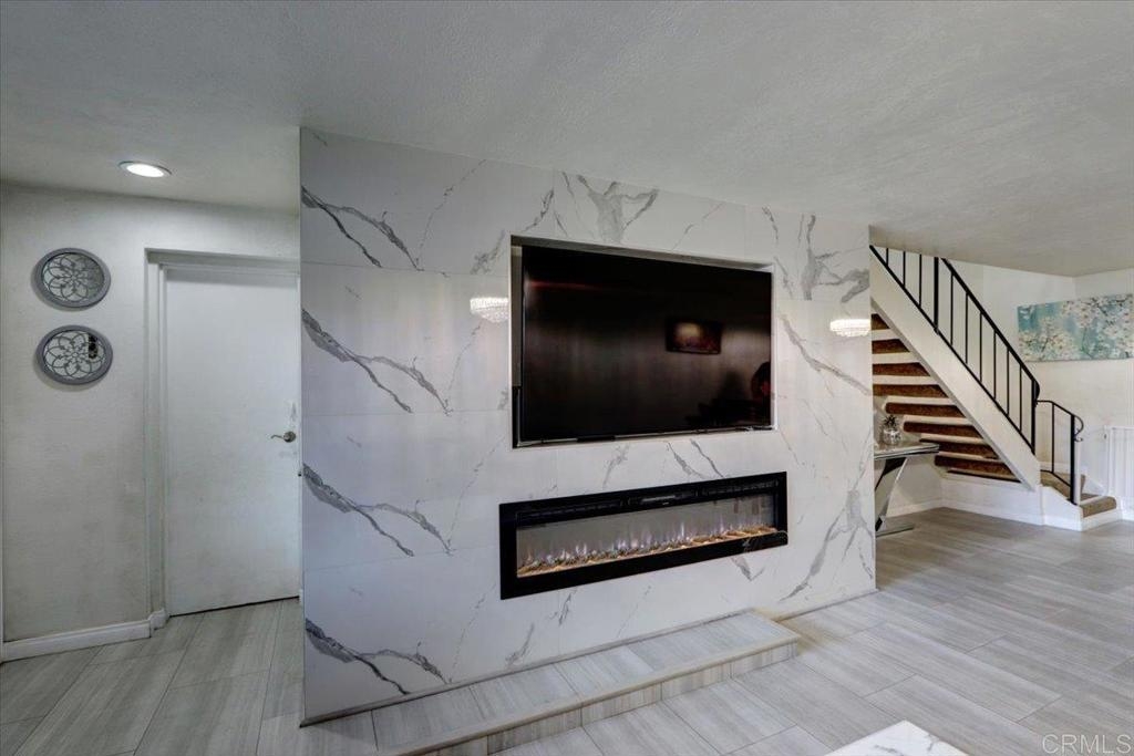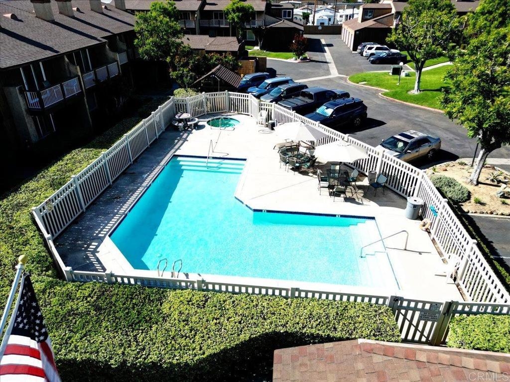 Welcome to 990 E Main St Unit A, a beautifully updated corner two-story condo located in the heart of El Cajon. The main level features new vinyl flooring, upgraded doors, a custom marble accent wall with fireplace, and brand-new window shutters throughout. The kitchen has been completely redone, including updated plumbing, and all bathrooms feature new toilets and faucets. Upstairs, the walk-in closet has been repainted with new shelving, and both bedroom closets have also been refreshed. The attached garage—one of the few in the complex—has a newly painted floor and two ceiling-mounted storage shelves. The air conditioning is in excellent condition, offering year-round comfort. The HOA is $385/month and includes water, trash, sewer, landscaping, roofing, pest control, and access to the community pool and hot tub. The unit comes with two parking spots—one in the garage and one directly in front of the home—with eight visitor spaces available in the complex. This home offers modern upgrades, a functional layout, and a convenient location—it's centrally located and close to everything, including restaurants, grocery stores, shops, and more. Come see it for yourself!