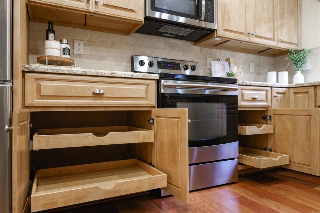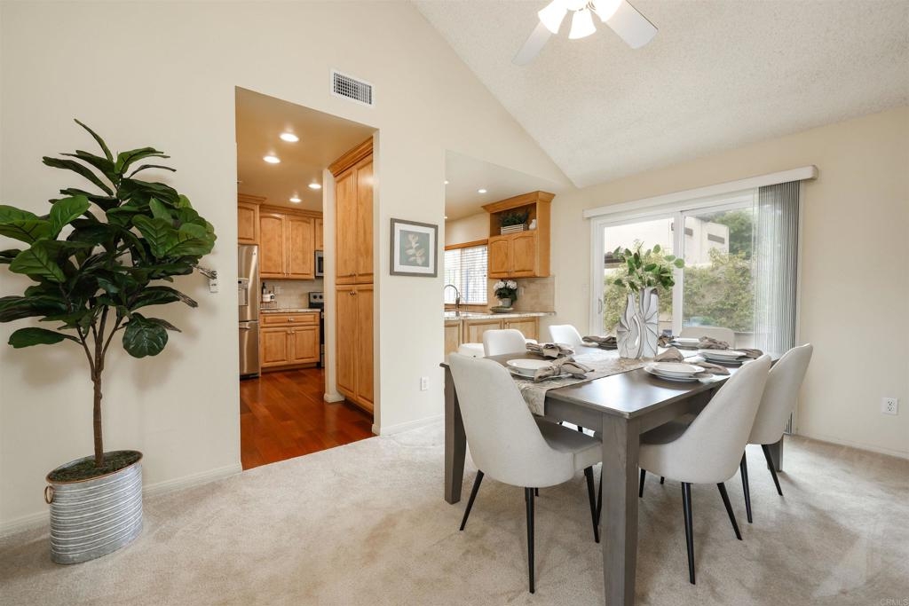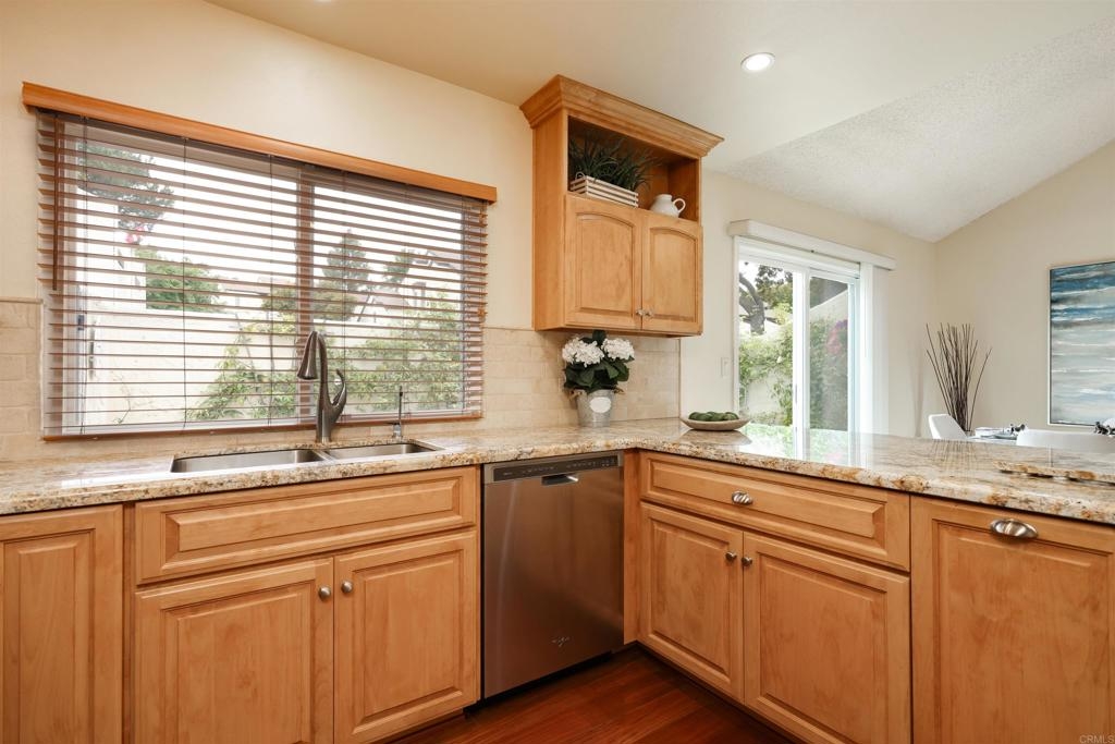Remarkable single level in Lakeridge Park with pride of ownership that shows from the moment you enter! Giant vaulted ceilings, completely remodeled kitchen featuring Soft Closing cabinets and drawers, gliding shelves, added built in pantry, stainless appliances with newer flooring and extensive counter space! Click on virtual tour to see this end unit on a cul de sac location that has all bedrooms on same level with a completely remodeled guest bathroom and updated features and fixtures throughout the home. Spacious guest room and lovely view out office window for those who work from home. Nice-sized and peaceful patio with fresh spring flowers is perfect for morning coffee or outside entertaining. Second patio off master bedroom sliding doors. Dual paned replacement windows and sliders throughout. The two car garage allows access directly into the home so no needing your umbrella when it rains. Owner may add solar, new roof installed 2023 has fireproof tiles. Move-in ready!