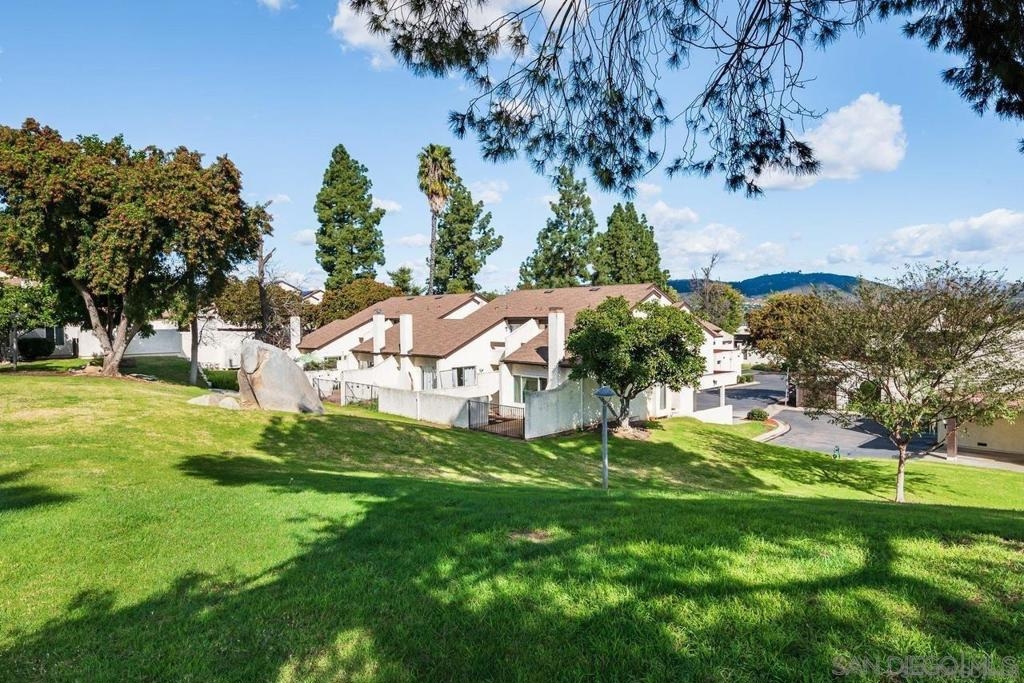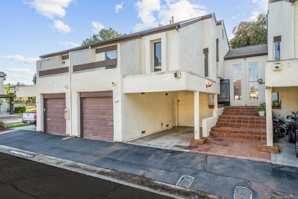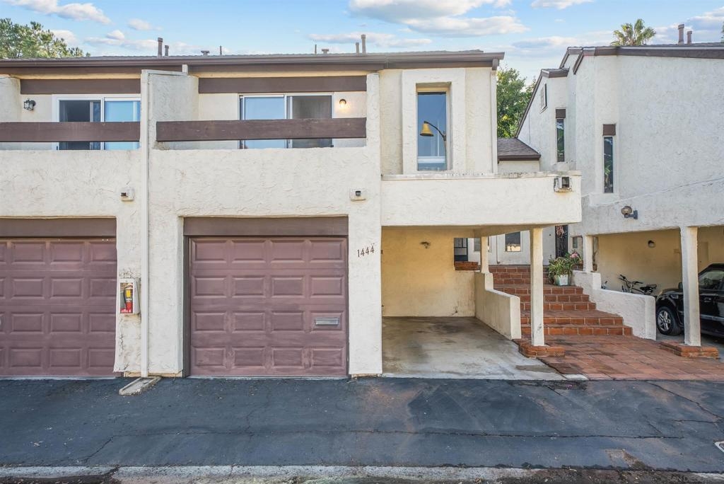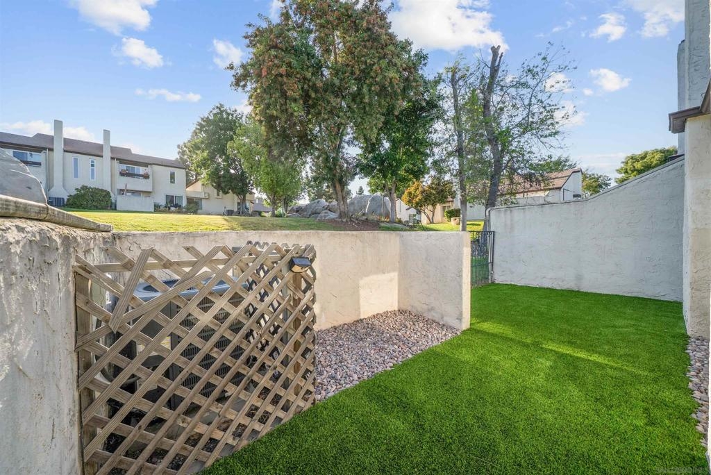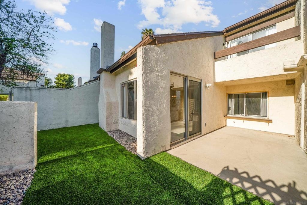 Beautifully updated townhouse in the desirable Fletcher Hills community. This light-filled home features vaulted ceilings, newer tile flooring, recessed lighting, freshly turfed backyard, brand new furnace (2025), and newer AC (2021). The fully remodeled kitchen includes custom cabinets, stainless steel appliances, and a wet bar—perfect for entertaining. Dual master-style layout with two spacious bedrooms, each with its own full bath and private balcony. The primary suite boasts a newer vanity, sink, faucet, and lighting. Additional upgrades include retextured ceilings/walls, updated shower enclosures, and an in-unit full-size laundry closet. Enjoy a large deck overlooking a serene greenbelt—no neighbors above or below. One-car garage plus private covered carport. HOA recently replaced roofs (2022) and resurfaced balconies. Community includes pool, hot tub, trash service, exterior and common area maintenance. Prime location near the 52 & 125 freeways, Santee Sportsplex, shopping, and dining.