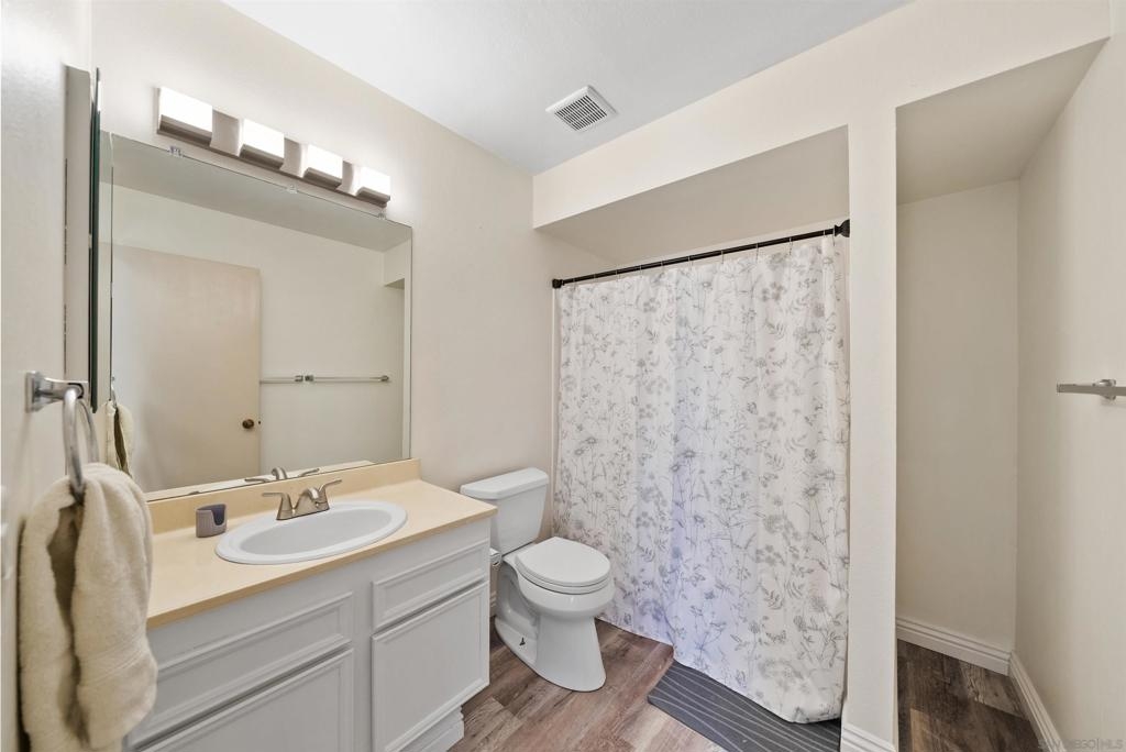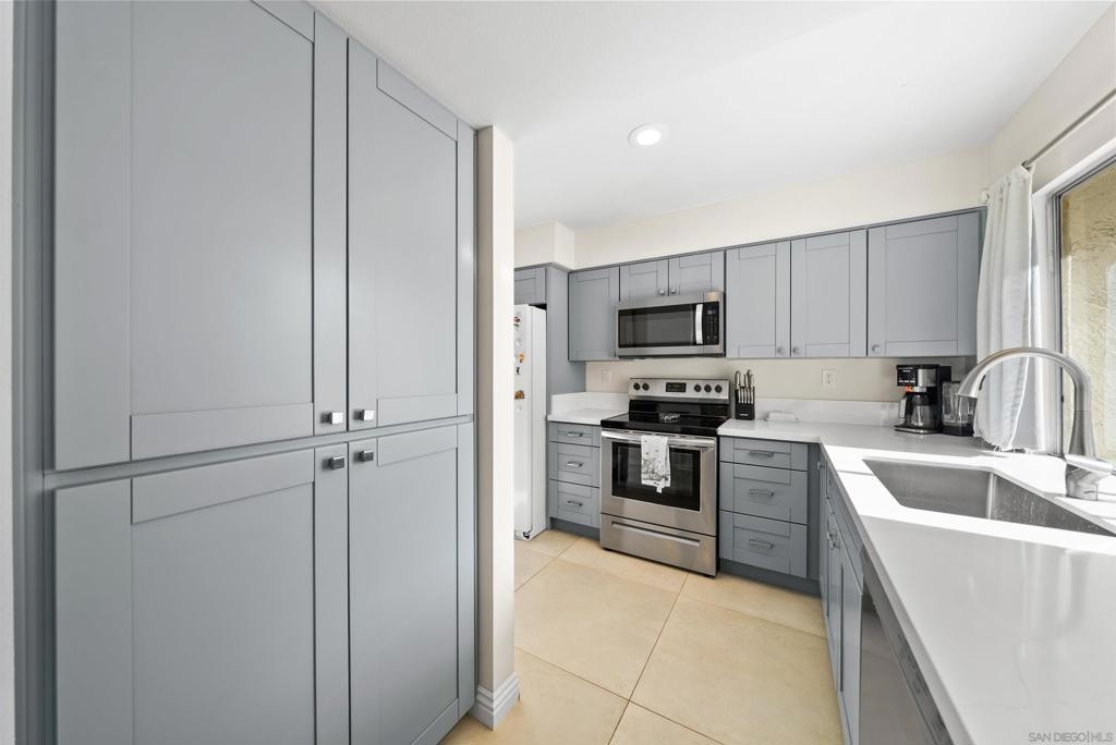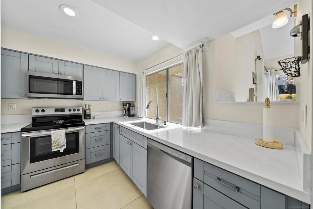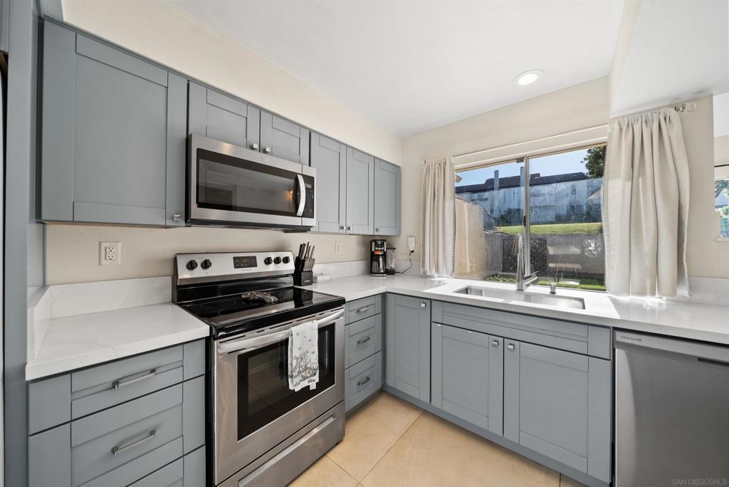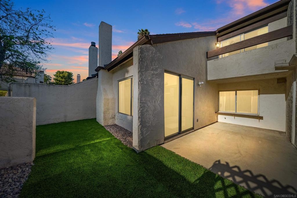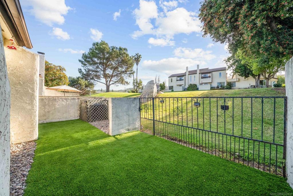 Beautifully updated townhouse in the desirable Fletcher Hills community. This light-filled home features vaulted ceilings, newer tile flooring, recessed lighting, freshly turfed backyard, brand new furnace (2025), and newer AC (2021). The fully remodeled kitchen includes custom cabinets, stainless steel appliances, and a wet bar—perfect for entertaining. Dual master-style layout with two spacious bedrooms, each with its own full bath and private balcony. The primary suite boasts a newer vanity, sink, faucet, and lighting. Additional upgrades include retextured ceilings/walls, updated shower enclosures, and an in-unit full-size laundry closet. Enjoy a large deck overlooking a serene greenbelt—no neighbors above or below. One-car garage plus private covered carport. HOA recently replaced roofs (2022) and resurfaced balconies. Community includes pool, hot tub, trash service, exterior and common area maintenance. Prime location near the 52 & 125 freeways, Santee Sportsplex, shopping, and dining.