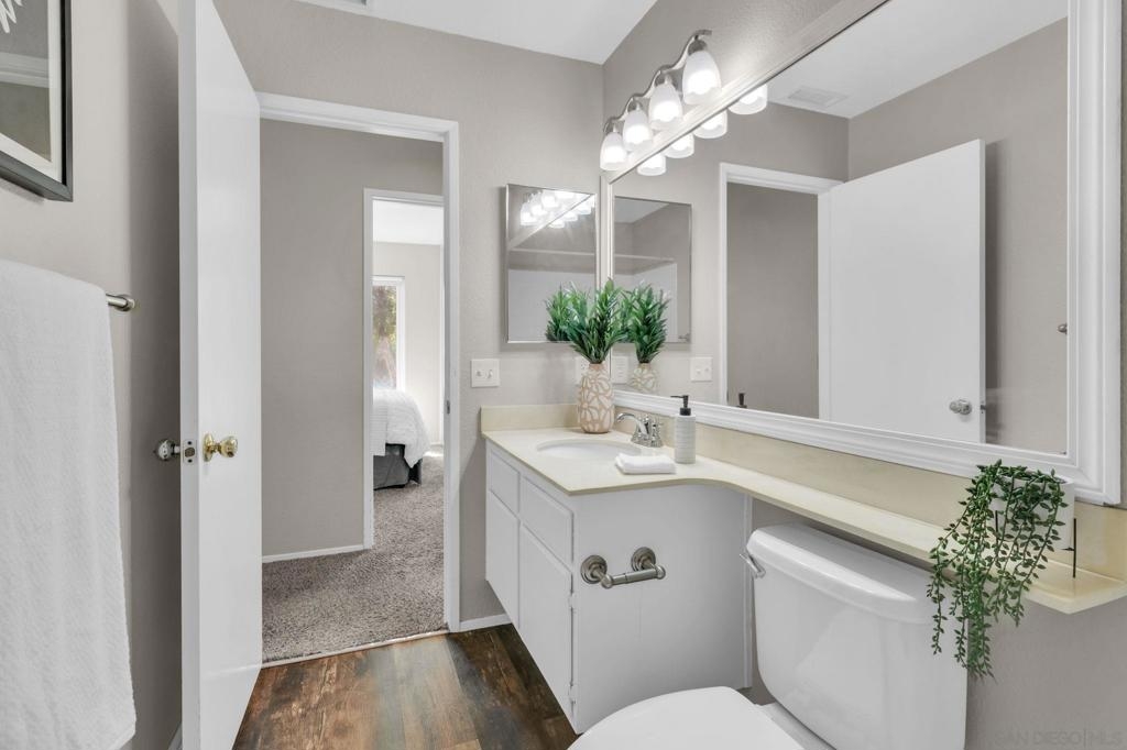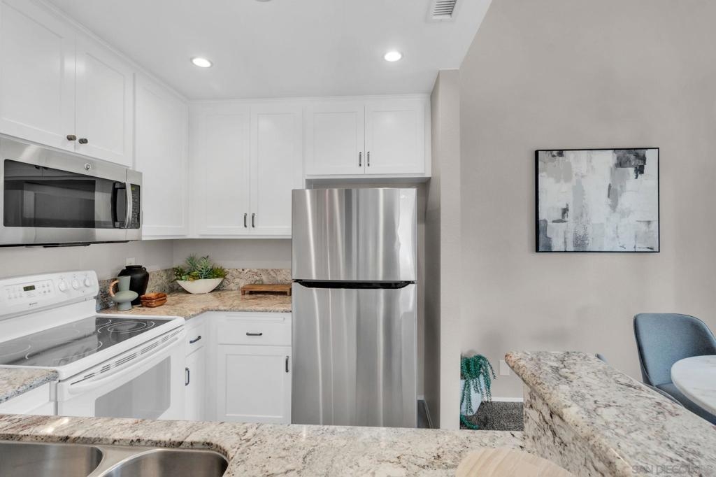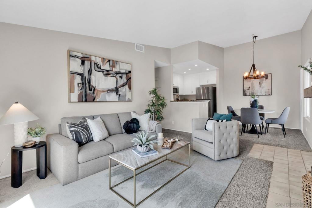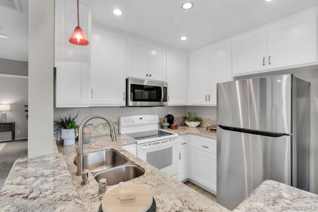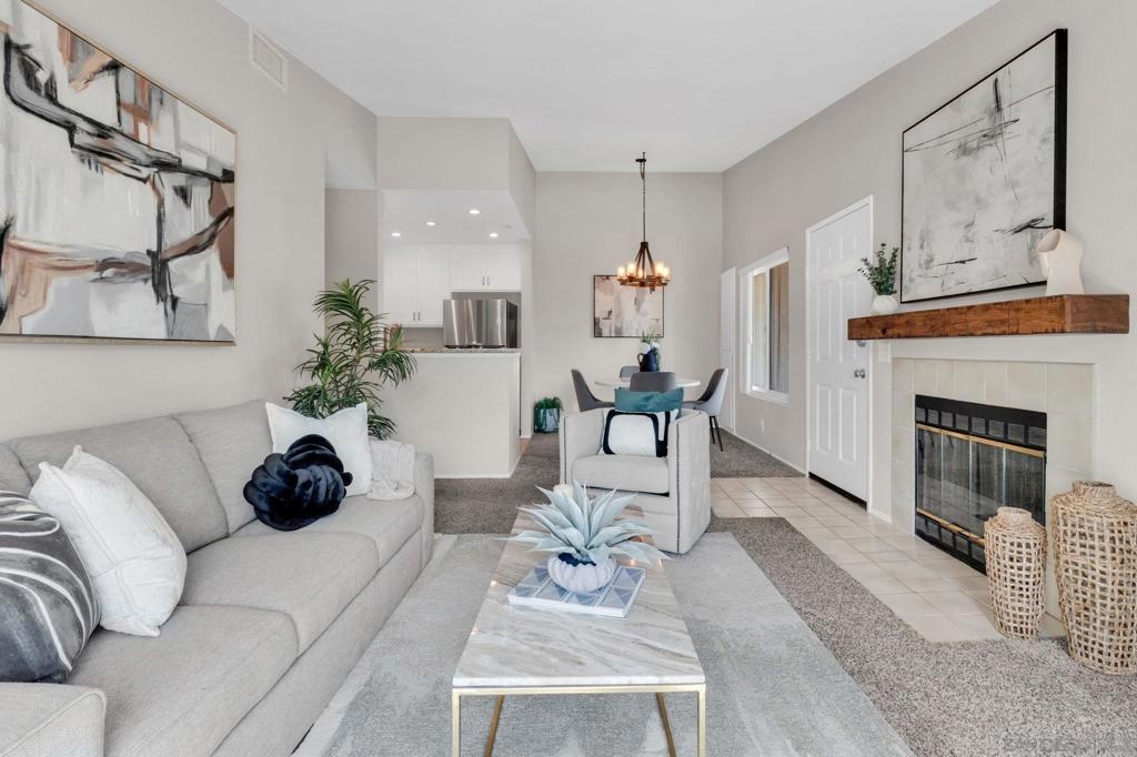 Price Improvement! Welcome to Mirasol in Rancho San Diego. This beautifully updated upper-level condo offers 2 bedrooms and 2 bathrooms in a bright, open floor plan. The spacious living room features vaulted ceilings, a cozy fireplace, abundant natural light, and direct access to a private patio. The remodeled kitchen boasts granite countertops, shaker cabinets, tile flooring, stainless steel appliances, and recessed lighting—perfect for cooking and entertaining. The primary suite includes soaring ceilings, dual closets, built-in shelving, and a stylishly updated en-suite bath. Additional highlights include in-unit laundry, two covered carport spaces with extra storage, and modern conveniences like EV charging. Mirasol residents enjoy a sparkling community pool and spa, plus water included in the HOA. This is the Rancho San Diego condo you’ve been waiting for!!