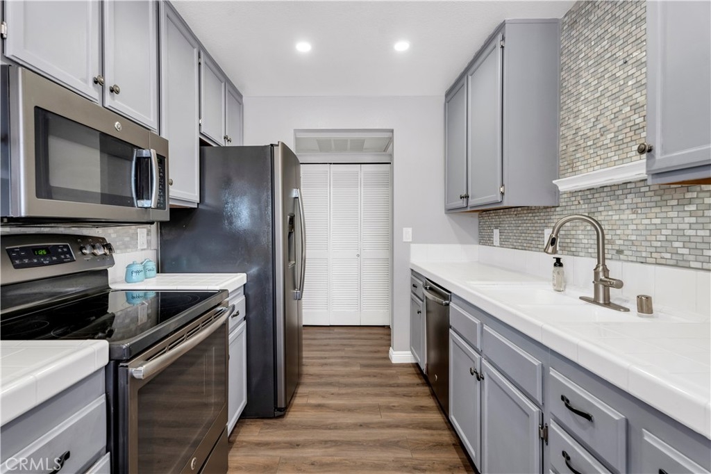 Welcome to the Mirasol Development in Rancho San Diego! This ground-level corner unit is a hidden gem, featuring 2 bedrooms and 2 bathrooms spread over a spacious 970 square feet of living space. Step outside onto your expansive walk-out patio area, perfect for enjoying the beautiful California weather. Inside, you'll find a light and bright living room with stunning LVP flooring throughout. The convenience of an indoor laundry area with a full-size washer and dryer makes everyday tasks a breeze. The interior has been freshly painted, giving the home a modern and fresh feel. This unit comes with two covered carport parking spaces, each with storage containers, and plenty of guest parking for visitors. The complex also offers EV charging stations, perfect for environmentally conscious residents. Take advantage of the community pool and spa for days of relaxation and enjoyment. Located near Cuyamaca College, community parks, and a shopping center, this home is in a prime location. Clean, move-in ready, and full of potential, don't miss out on this fantastic opportunity to make this your new home sweet home in beautiful Rancho San Diego!