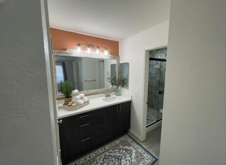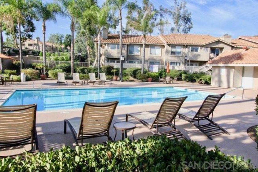 Highly desirable 970sqft floorplan, corner-unit and ground level (checks all the boxes)! This charming two-bedroom, two-bathroom condo is located within the beautiful Mirasol complex in Rancho San Diego. This end-unit offers a blend of comfort, style, and convenience. As soon as you step into this property, you're greeted by an open concept dining and living room area that's perfect for entertaining or simply relaxing after a long day. Light bounces off every corner of this unit, creating a warm and welcoming atmosphere. The remodeled kitchen (all appliances convey) is modern and sleek with ample counter space to prepare your favorite meals. Adjacent to the kitchen is the dining area that seamlessly transitions into the living room area. You'll also find generous closets in each bedroom providing abundant storage space and a full-size in-unit laundry closet (washer & dryer convey). One of the highlights of this home is its fenced patio adjacent to the open hillside, so you have plenty of privacy. Unit comes with (2) Assigned/Covered parking spaces (w/storage space). Complex also offers EV Charging Stations and (2) Resort style pool/spa areas. PHOTOS VIRTUALLY STAGED.