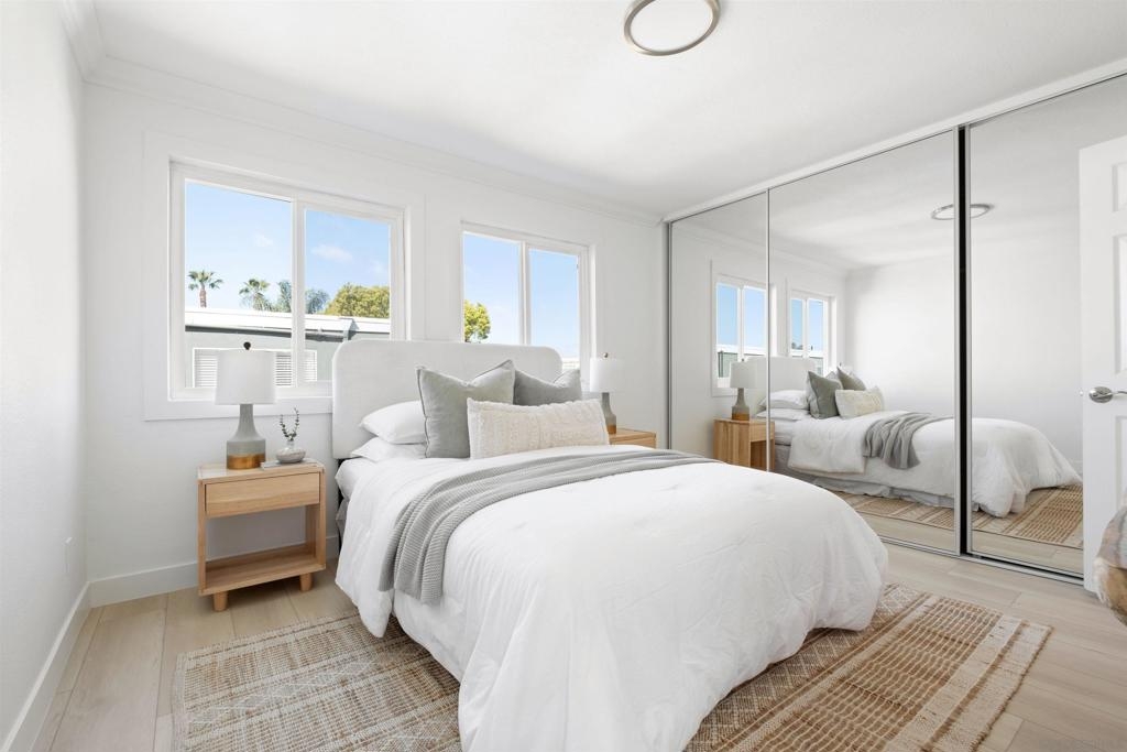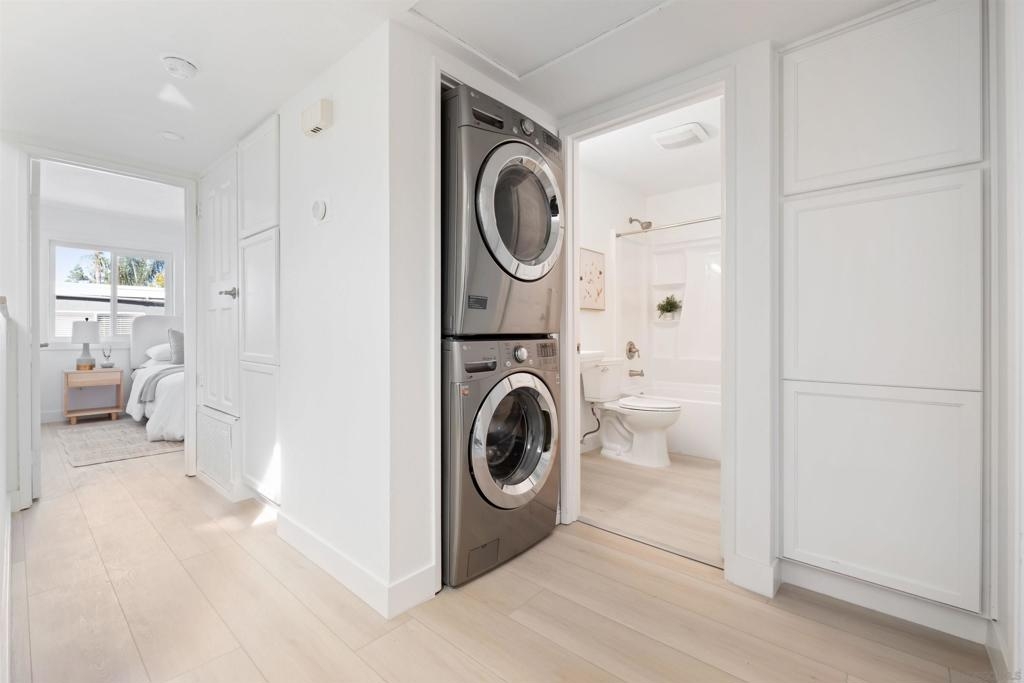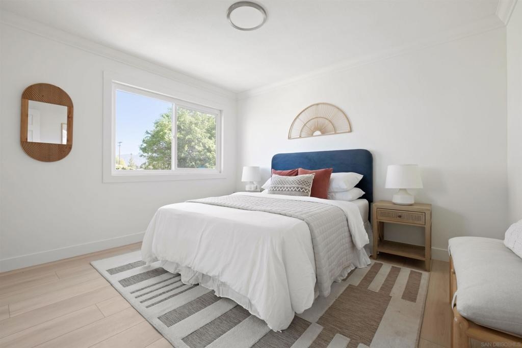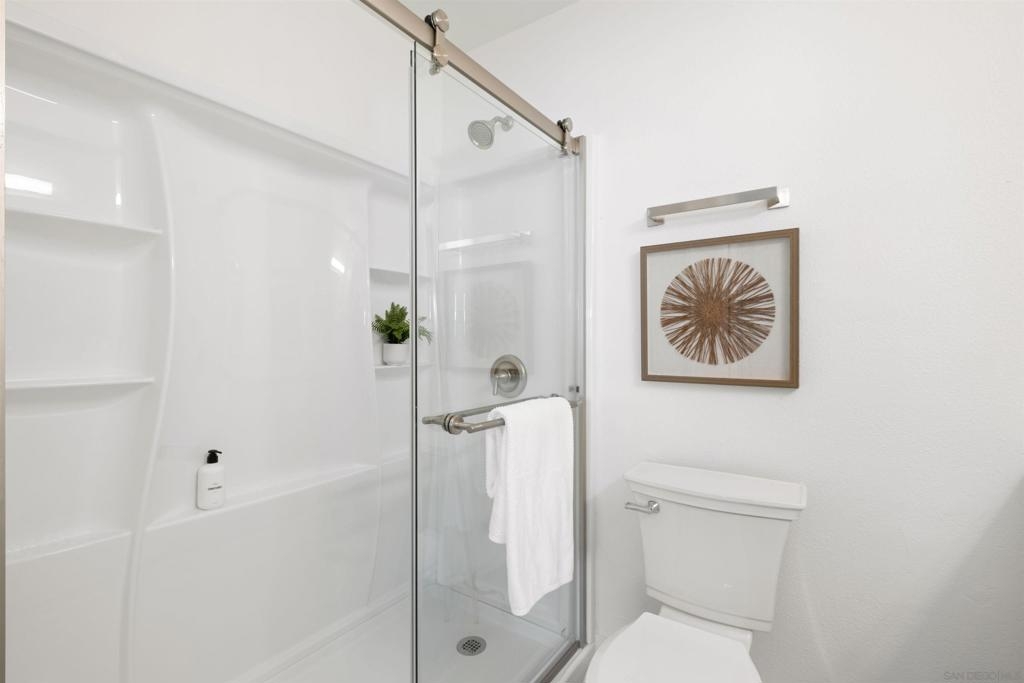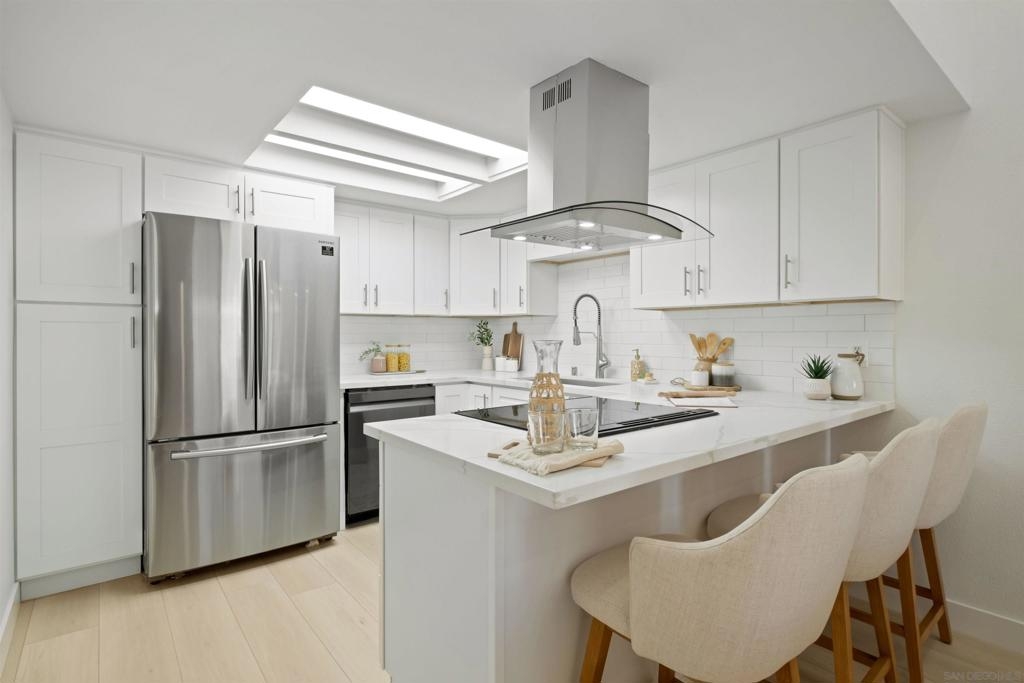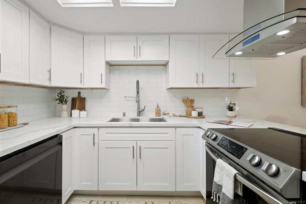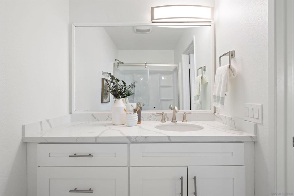 Discover Your Boho-Chic Sanctuary: Top-Floor Condo in El Cajon's Monterra Complex. Escape to modern comfort and stylish living with this BOHO-inspired remodel. This unit is move-in ready with a host of modern amenities. As you enter, you'll be greeted by soaring vaulted ceilings and abundant natural light, enhancing the open and inviting ambiance. The updated kitchen boasts sleek quartz countertops, elongated subway tile backsplashes, brand new cabinets with a single bowl sink, making it a delight for both cooking enthusiasts and casual diners. The remodeled bathrooms offer new cabinets, quartz countertops, new shower inserts with shelves for a sleek, contemporary feel. Central A/C ensures comfort year-round, while energy-efficient dual-pane windows keep utility costs down. Enjoy the convenience of an in-unit stackable washer and dryer, alongside a 1-car garage and an additional assigned parking space. This charming, smaller gated complex offers a relaxing pool area, perfect for unwinding after a busy day. Located just moments from downtown El Cajon, you'll benefit from easy freeway access and proximity to parks, schools, and public transportation. Plus, VA financing is welcome, making this an ideal opportunity for a variety of buyers. Don't miss your chance to own this beautifully updated condo. Schedule a tour today to experience all it has to offer!