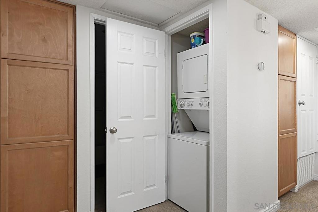 Move in ready upper unit with vaulted ceilings, w/central A/C. upgraded kitchen and baths, stackable washer & dryer included, energy efficient dual pane windows. One care garage plus one additional assigned space, relaxing pool area. Central location easy freeway access walking distance to downtown El Cajon, park, schools and bus lines. Smaller gated complex. VA financing welcome.