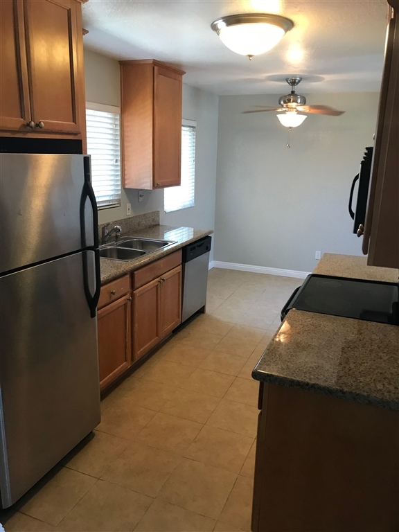 Welcome to El Cajon most affordable single story 2 bed 2 full bath condo in very small, quiet and gated community. Second floor location: nobody is above you. Unit featured: granite kitchen counters, fridge, stove, microwave, full size laundry hook ups, tiled bathrooms, walk-in closet, central AC/heat, vinyl windows, water/sewer/trash included. Walking distance to shops. Close to freeways 8/67/125. Assigned 2 parking spaces. Nice pool. Can be rented up to $1700. Neighborhoods: El Cajon Equipment: Range/Oven Other Fees: 0 Sewer: Sewer Connected Topography: LL