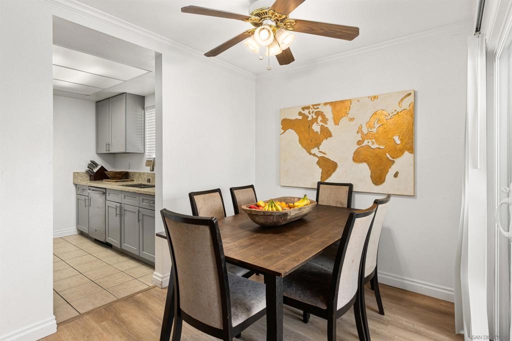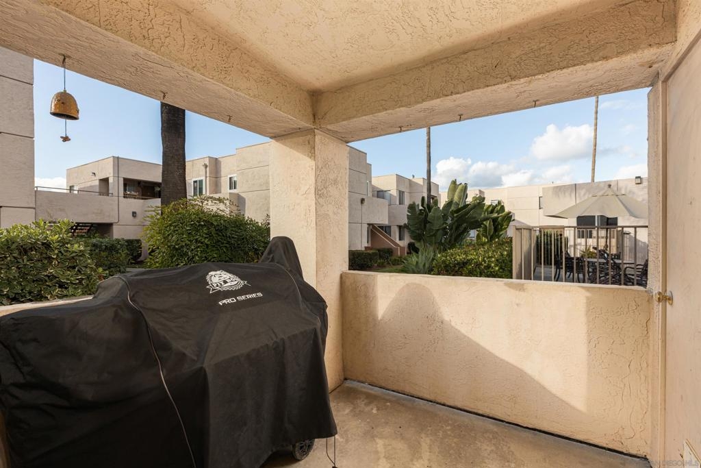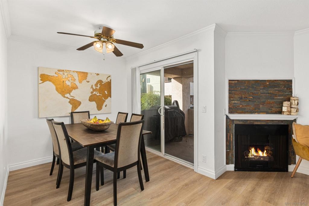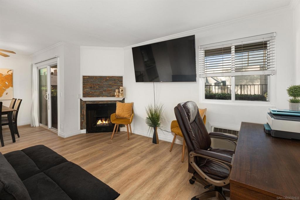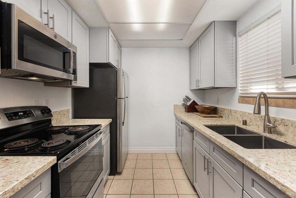Beautiful corner condo at the Palm Court complex. Tucked away from the main street, this ground-level home boasts a generous living room with luxury vinyl plank flooring, a fireplace, and an adjacent dining area featuring a large patio sliding door. The remodeled kitchen features new cabinetry, granite counter-tops, and ss appliances. It also has two large bedrooms, a large soaking tub, a nice covered patio, a detached 1-car garage, and an assigned carport parking space. Enjoy all the community amenities, such as a pool, spa, exercise room, and pristine landscaping. The complex is VA approved, fully gated and secure, with a community laundry room. Ideally situated within walking distance to shopping, dining, freeways, and more!