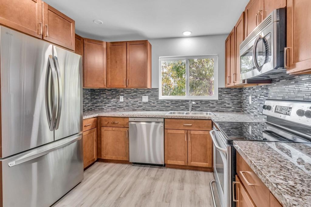 Welcome to this charming townhome nestled in the desirable Fletcher Hills neighborhood. Boasting a prime location with easy access to freeways, shopping centers, and top-rated schools, this home offers convenience and comfort for modern living. Featuring three bedrooms and two and a half bathrooms spread across 1454 square feet, this townhome provides ample space for families or those seeking room to grow. Step inside to discover a spacious kitchen and living area, perfect for entertaining guests or relaxing with loved ones. The recently remodeled kitchen showcases stainless steel appliances, including a brand new refrigerator, making meal prep a breeze. Natural light floods the interior, highlighting the newly painted walls and stylish vinyl plank flooring throughout. The cozy carpeted bedrooms provide a peaceful retreat, while the tile-adorned bathrooms exude a touch of elegance. Step outside to the large covered patio, ideal for enjoying morning coffee. Ample storage space can be found both within the unit and the attached two-car garage, offering plenty of room for belongings. Residents can take advantage of the amenities, including a pool and spa, perfect for relaxing on sunny days. Plus, with only 36 homes in the community, you'll enjoy a sense of tranquility and privacy. Flying Hills School of Arts, rated 18th best middle school (K-8) in the area by Niche.com, is conveniently located nearby. Experience the best of East County living with easy access to shopping at Parkway Plaza and dining options at Grossmont Center, including the local favorite Beef n bun on Fletcher Parkway. Commuting is a breeze with quick access to the 8, 67, 52, and 125 freeways, as well as the Trolley line. Pets are welcome in this pet-friendly community, adding to the appeal of this turn-key townhome. Don't miss your chance to own this spacious and impeccably maintained townhome in a quiet and desirable location. Schedule a showing today and make this your new home sweet home!