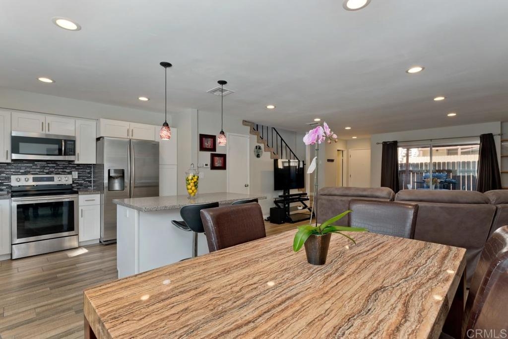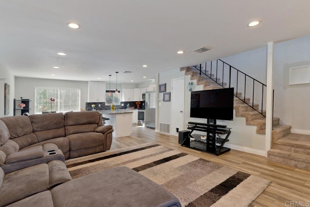 You will love living here! Bright, light and beautiful. In the highly desired neighborhood of Flying Hills (Fletcher Hills) in El Cajon, this gorgeous home features an open concept spacious living room, dining area, and kitchen with custom island. Gorgeous remodel embraces new cabinets, quartz counters, soft close drawers, wood tile floors and recessed lighting. Private patio area has ample room to enjoy your morning coffee or evening barbecue. New air conditioner, heater, washer and dryer. 1/2 bath downstairs, 2 bedrooms and large gorgeous bath, utility are upstairs. Close to Grossmont College, Sharp Grossmont Hospital, Schools, Restaurants, Freeways