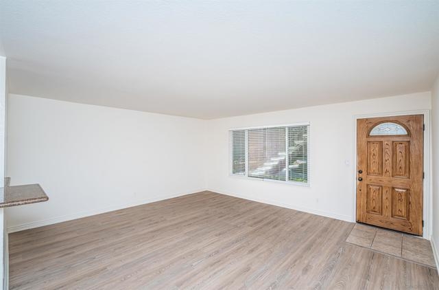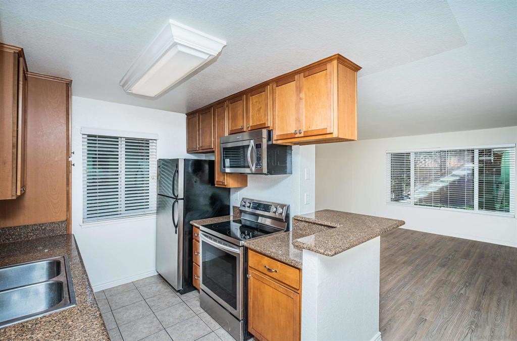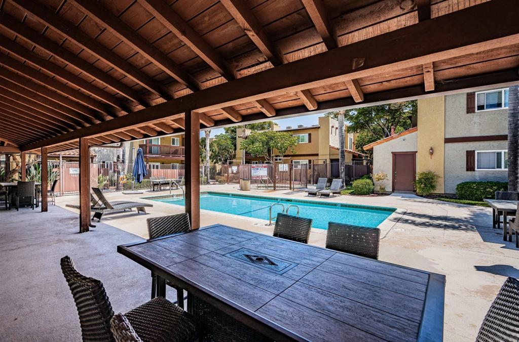 This upgraded single story 2 Bedroom, 2 Bath condo is in a well-maintained gated complex with two exclusive premium parking spaces conveniently located just steps away from the unit. Enter the 18 x 16 living room with new vinyl wood look flooring and tile in entry, kitchen/dining, and baths. Large living room window overlooking the serene courtyard and providing the living space with natural light. Enjoy the comfort of a new Heat Pump HVAC system providing both heat and air conditioning to the full unit. Freshly painted interior, dual pane vinyl windows and patio slider door. The kitchen seamlessly flows into the dining area and boasts granite countertops, wood cabinets and stainless-steel appliances with dishwasher. The large master bedroom offers a walk-in closet, an additional closet, linen-desk area and private master bath with tile flooring and glass-enclosed tub/shower. The 2nd bedroom also provides plenty of space with a walk-in closet. The hall bathroom offers a beautifully appointed vanity, tiled flooring, and a glass-enclosed shower/tub. The concrete 14’ x 10’ back patio is off the dining room and provides a private large storage closet. See Supplement for more… The complex includes a coin-operated laundry room, clubhouse, pool, spa, and fenced dog run/play area. Water, trash, and sewer are included in the monthly HOA fee. Located just off Chase Ave. and Hwy 8 close to freeways, shopping, schools, restaurants & parks.