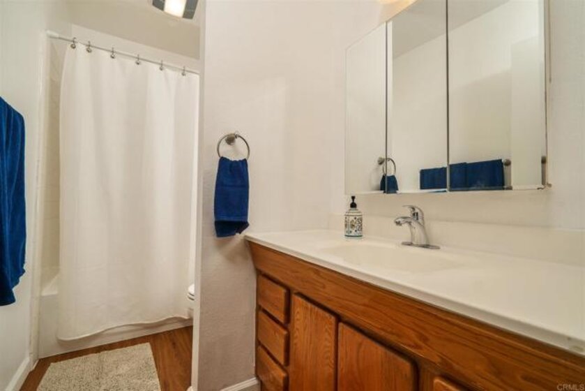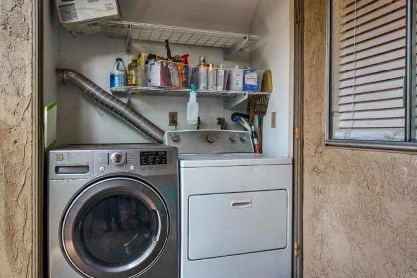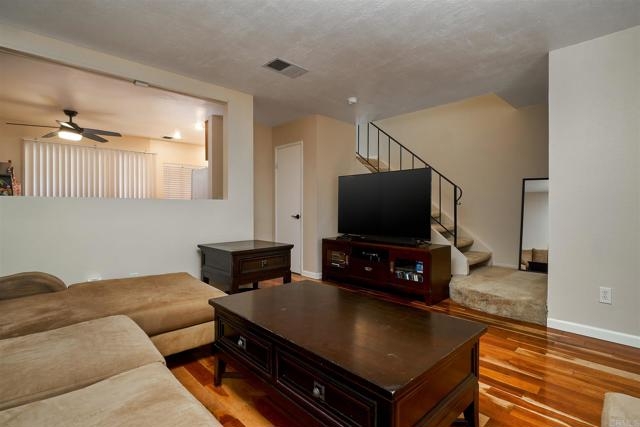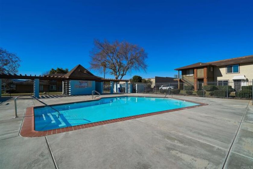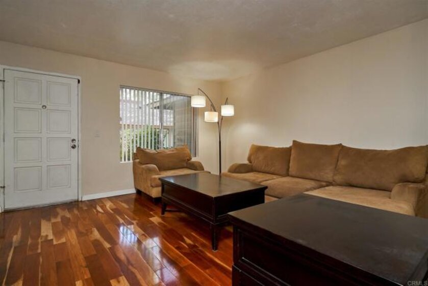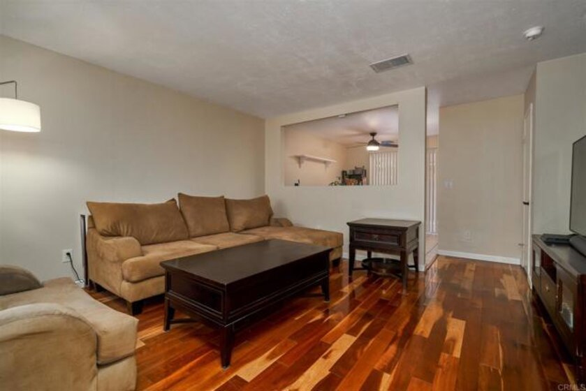 This great unit is move in ready! It's located at the back of the complex away from the roads and a short walk to the pool and park-like setting. The home features updated bathrooms, central HVAC, newer wood flooring, and a fresh coat of paint throughout. Spacious living room open to dining area and kitchen. Plenty of storage within the shared 1 car garage and a private patio with in-unit laundry. Centrally located to the best of both El Cajon and Santee.