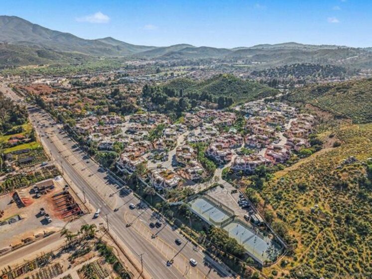 Discover the perfect blend of privacy and relaxation in this rarely available 2 bedroom, 2 bath Rancho Villas townhome. This cottage-style design end unit has only one shared wall and no neighbors above or below, offering a sense of tranquility and space. Step inside to discover real hardwood floors that flow throughout the home and are anchored by a welcoming gas fireplace. Peace of mind comes with the new HVAC system and water heater, both installed last year. The home shines from a host of updates, including completely new bathroom flooring, fresh paint throughout the interior and garage, new light, bathroom and kitchen sink fixtures, and new blinds. Is it modern convenience you seek? Say no more as the home comes with a 2025 Nest thermostat and smart garage door opener that connects to your phone and is enabled for secure deliveries. All appliances are included, featuring a new dishwasher and washer and dryer set, adding incredible value and practicality. This home's unique 2-story layout features a convenient downstairs bedroom and full bath, providing the perfect space for guests, a home office, or multigenerational living. Enjoy your very own spacious and private back patio, or retreat to the primary suite upstairs, complete with its own serene balcony. All this combined with a low HOA that includes three pools and spas, two tennis courts, and a well-equipped gym make this a top choice for the best in Rancho San Diego living. Come experience the ease of a low-maintenance lifestyle paired with the comfort and convenience you’ve been searching for. VA & FHA approved!