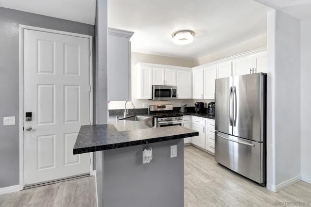Rarely available 3 bedroom second floor unit, remodeled kitchen, stainless steel appliances, remodeled bath (master). Newer appliances in kitchen, with built in microwave. Gas fireplace in living room, with balcony off the living area with plantation shutter. Nice sized bedrooms. Remodeled master bath is spacious and has private toilet area and double sink vanity. Kitchen and bathroom have neutral floors and quality fixtures. Neutral interior finish. Located at back of complex. Walk to shops and stores nearby. Easy access to commute.