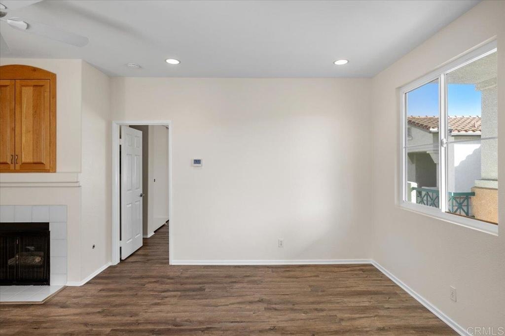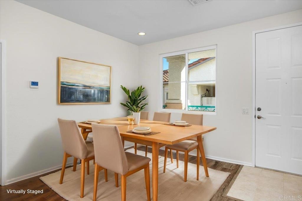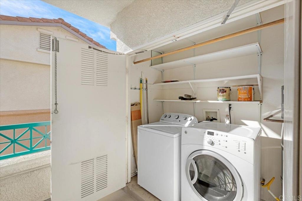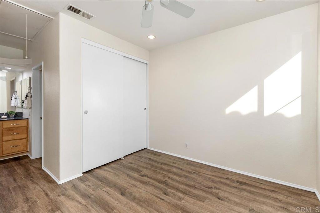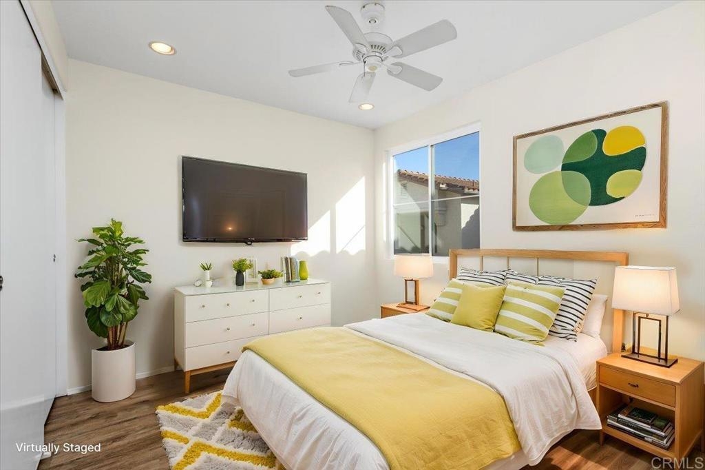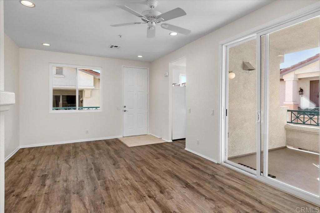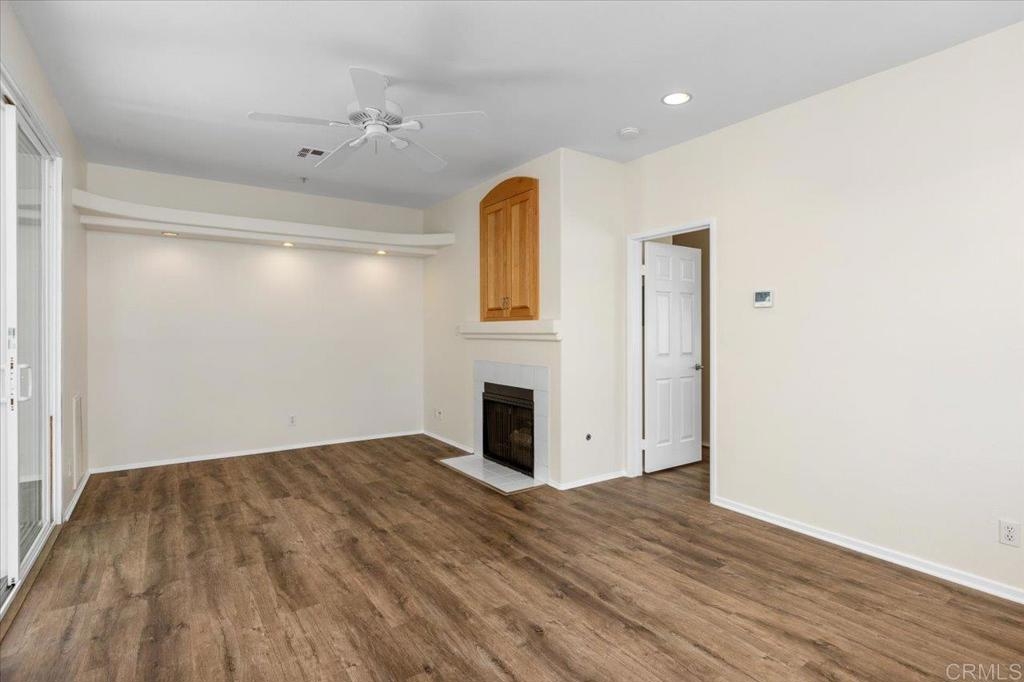 FHA AND VA approved community. Welcome home to this stunning upper-level end unit filled with natural light, featuring luxurious vinyl plank flooring, custom paint throughout, and recently replaced central heating ventilation and air conditioning system. The open-concept kitchen, living, and dining areas create the perfect space for entertaining, and guests can enjoy the spacious deck or cozy up by the fireplace on cooler evenings. Retreat to the primary suite, boasting a designer-inspired ensuite complete with a custom built - vanity, floor-to-ceiling storage cabinet, an additional closet and convenient pull-down attic storage. Plus, new HVAC system, and an oversized laundry closet equipped with a full-size washer and dryer for added convenience. Located in the heart of Rancho San Diego, just moments away from shopping, Cottonwood Golf Course, and Cuyamaca College. This gem won’t last long—don’t miss it!!