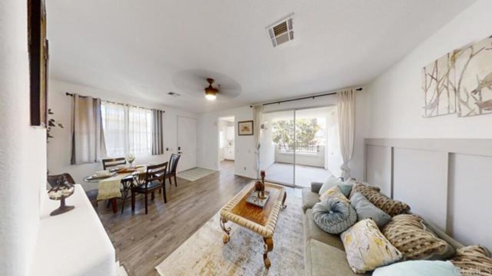 This upstairs unit is move-in ready with 2 bedrooms and 2 full bathrooms. The primary bedroom includes a spacious en suite bathroom with a dual vanity, providing a private and luxurious retreat. The home boast upgraded flooring throughout, sleek white quartz countertops, a designer backsplash, and stainless steel appliances, making the kitchen a stylish and functional space. The large balcony includes a private laundry space. The community offers a wealth of amenities for residents including a large pool, a relaxing spa and a fitness room. Don't miss your chance to get a great home between $529,000 and $539,000.