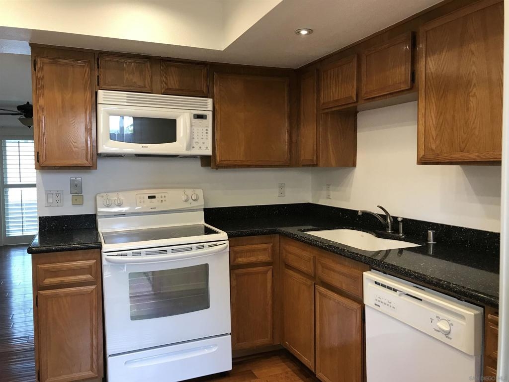 GATED COMMUNITY WITH SECURITY CAMERAS. PRIVATE END UNIT HAS TWO BALCONIES WITH SUNSET VIEWS. KITCHEN, LIVING ROOM, HALLWAY AND STAIRS, HAVE WOOD FLOORS.BEDROOMS HAVE CARPET. 2ND. BEDROOM HAS BUILT IN OFFICE DESK. SLIDER OPENS TO PRIVATE FENCED PATIO FROM KITCHEN. VAULTED CEILINGS, FIREPLACE IN LIVING ROOM. TWO CAR GARAGE. NEW PAINT THROUGH OUT. WASHER AND DRYER INSIDE UNIT. NEW REFRIGERATOR.A/C MOVE IN READY.