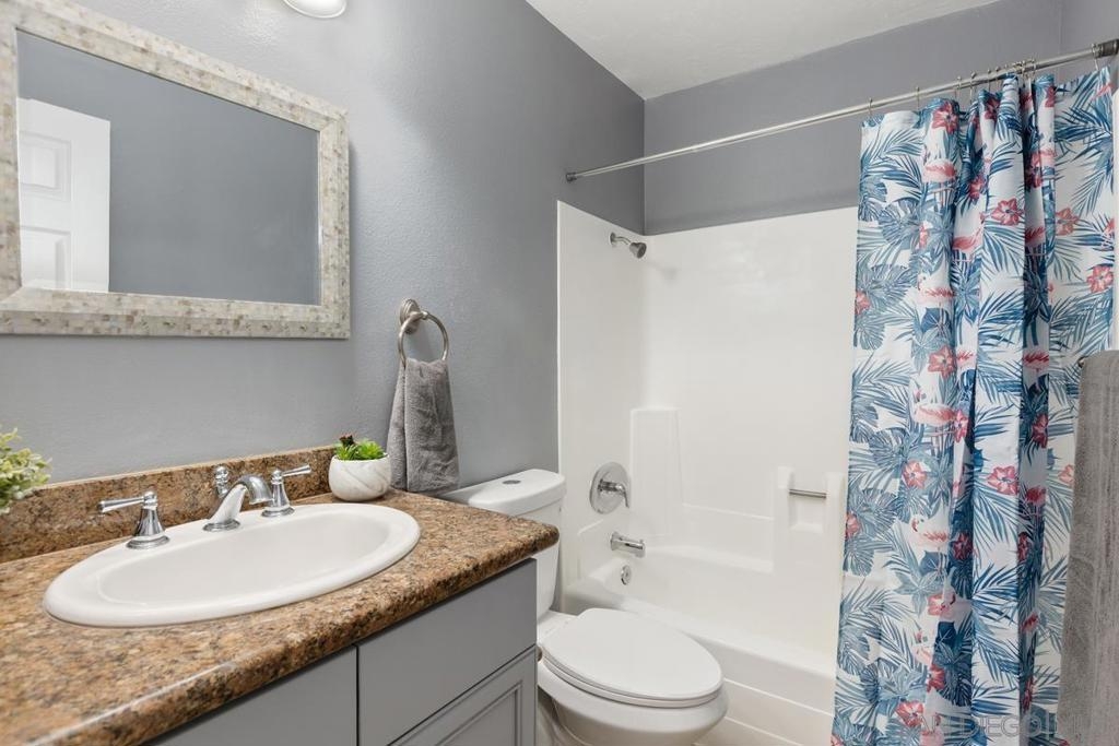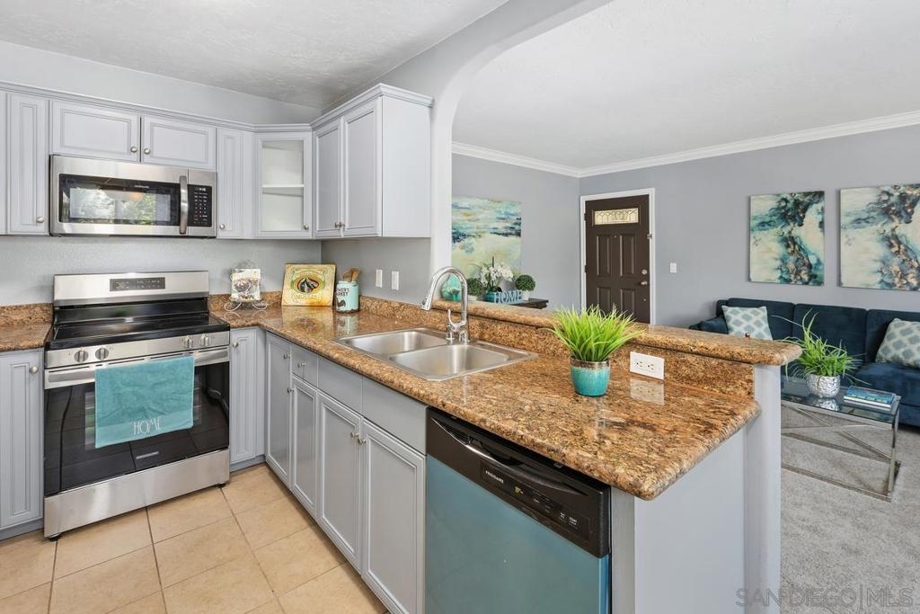 BETTER THAN A MODEL!!!! THIS AMAZING 2 BEDROOMS AND 1 BATH CONDO HAS COMPLETELY BEEN REMODELED! LOCATED ON THE 2ND FLOOR WITH BEAUTIFUL GRANITE COUNTERTOPS, ALL BRAND-NEW STAINLESS STEEL APPLIANCES, NEW CARPET & DESIGNER PAINT, STACKABLE WASHER & DRYER, MIRROR WARDROBES, DUAL-PANE WINDOWS AND PLENTY OF CABINET SPACE! OPEN FLOOR PLAN WITH GORGEOUS CROWN MOLDINGS AND ALL ROOMS ARE VERY SPACIOUS WITH TONS OF NATURAL LIGHTING AND A WONDERFUL CROSS BREEZE THROUGHOUT THE HOME! RESORT LIVING AT IT’S BEST SURROUNDED BY LUSH LANDSCAPING, SPARKLING POOL, BBQ & FIRE-PIT AREA, CLUB HOUSE AND FITNESS CENTER ALL IN A GATED STONEMARK COMMUNITY IN THE HEART OF EL CAJON! HOA INCLUDES TRASH, TERMITE, ROOF MAINTENANCE, LANDSCAPING AND 2 PARKING SPACES AND COMPLEX IS VA APPROVED. CONVENIENTLY LOCATED NEAR SCHOOLS, GROCERY STORES, RESTAURANTS, GAS STATIONS, SHOPPING, PARKWAY PLAZA MALL AND EASY FREEWAY ACCESS TO THE 8 & 67! GREAT FOR INVESTMENT OR 1ST TIME HOME BUYERS!