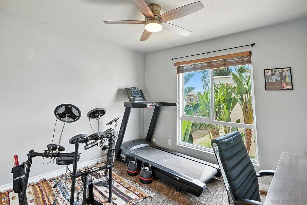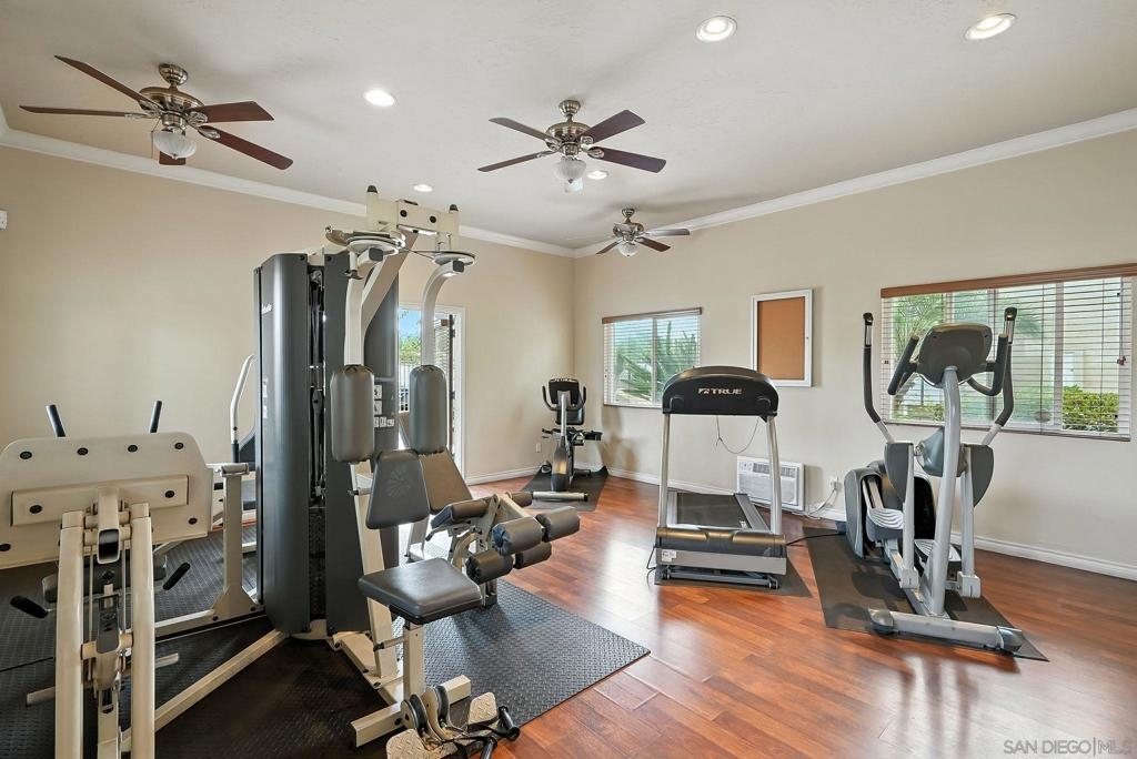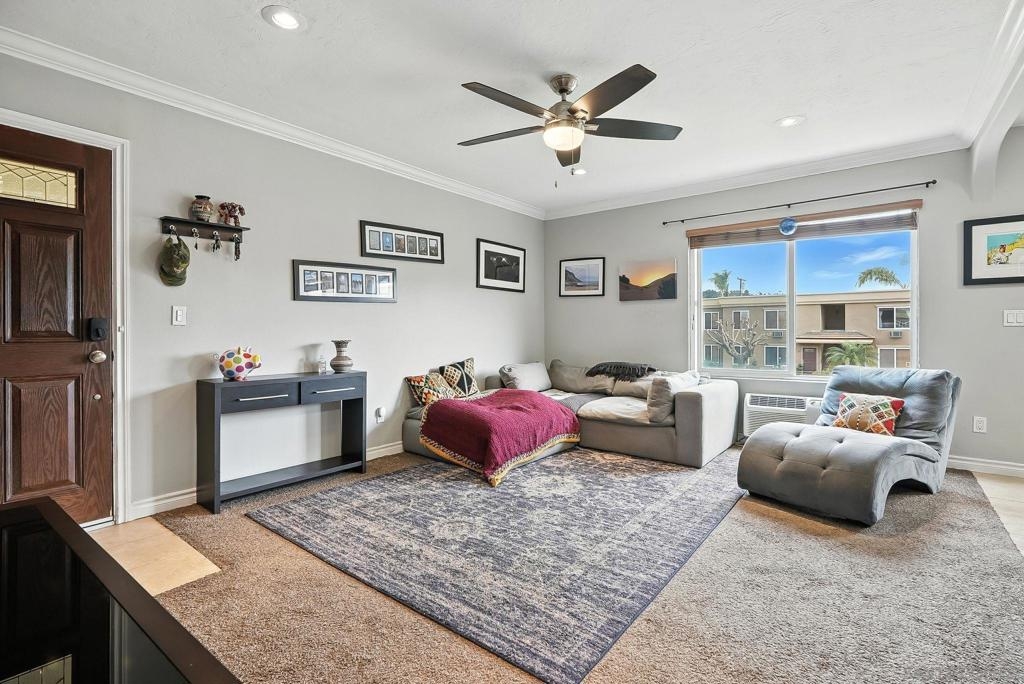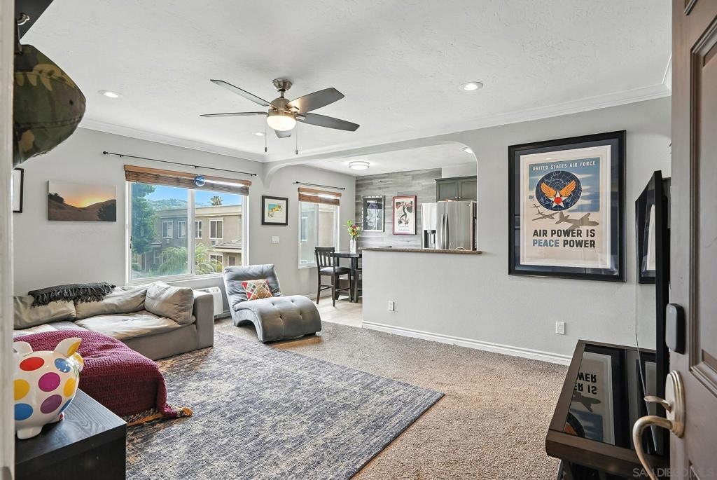 Move-in Ready Top Floor Corner Unit in beautifully-maintained gated community with pool, gym, BBQ area and firepit! This bright and airy 2 bedroom condo has newer Samsung appliances including stacked washer & dryer in-unit that all convey. Brand new ceiling fans in both bedrooms while living room has a newer ceiling fan and a wall A/C. Complex is also VA-approved! The prime El Cajon location puts you at the heart of it all, just minutes from Mission Trails Regional Park and Harry Griffen Park for outdoor adventures, while nearby grocery stores include Vons, North Park Produce, and Babylon International Market, plus easy access to Parkway Plaza with over 170 stores and major freeways for commuting throughout San Diego County. Whether you're a first-time homebuyer, looking to downsize or seeking an investment property, this top-floor corner unit offers the perfect combination of location, amenities and value that won't last long in today's market!