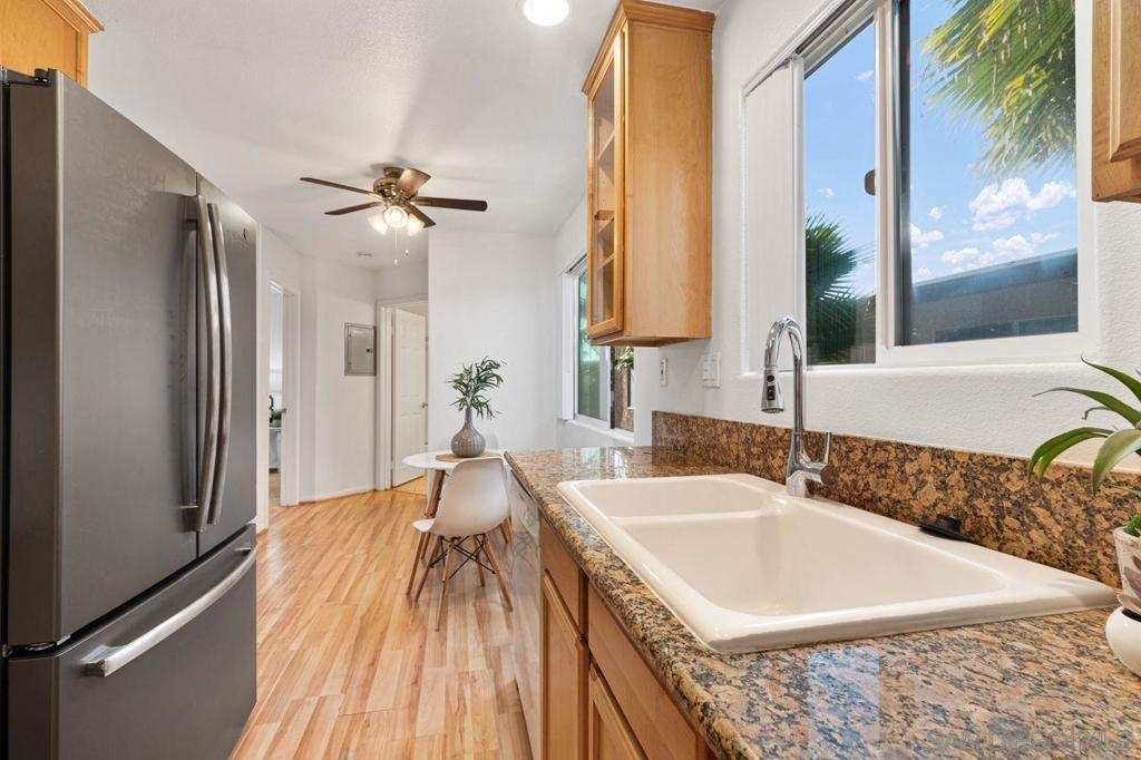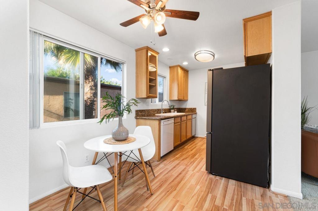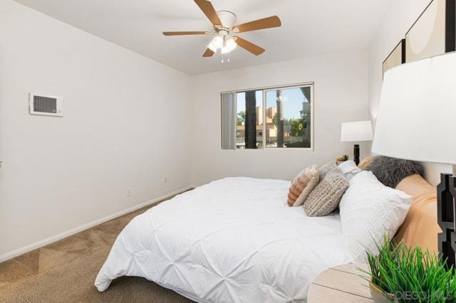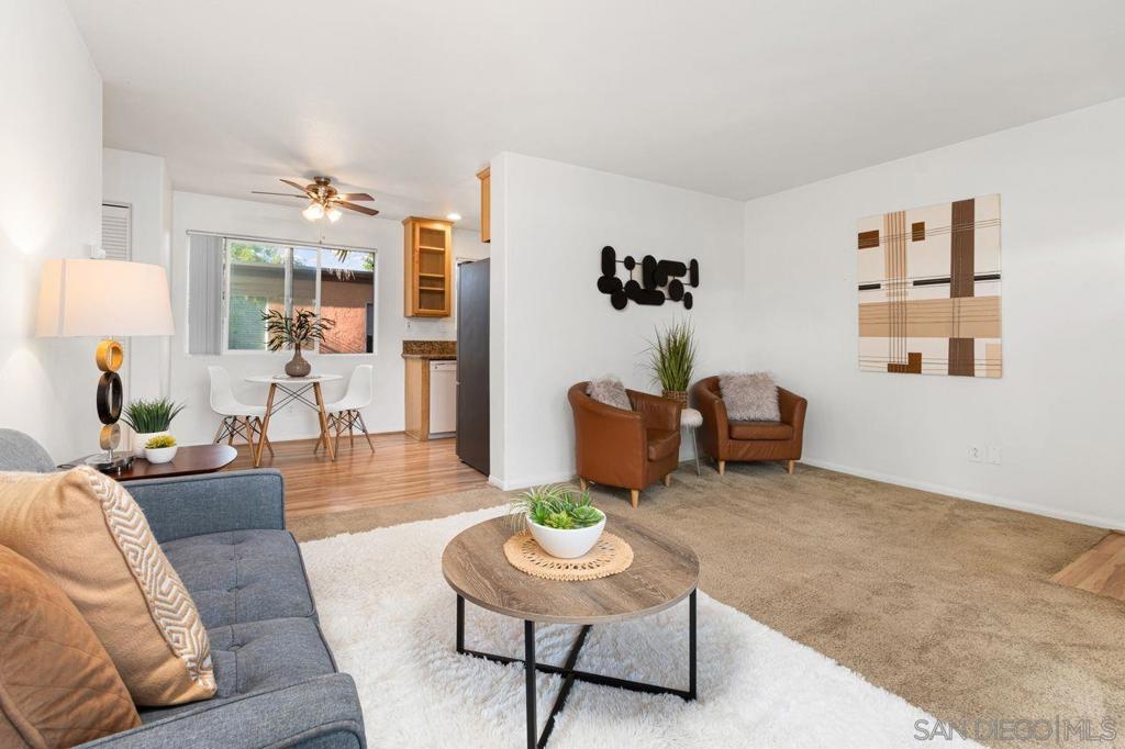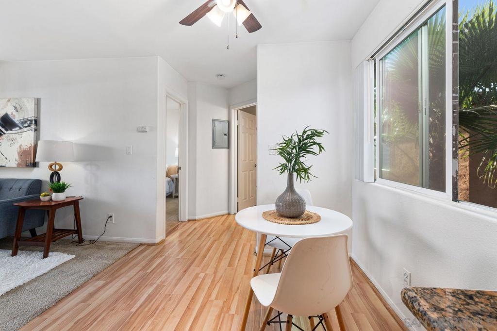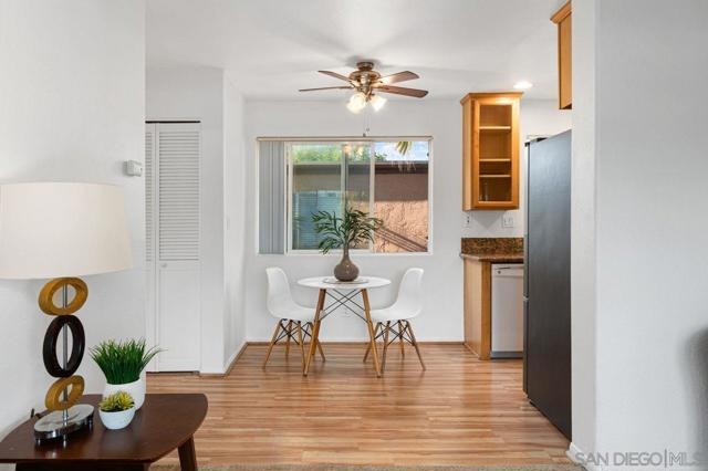Move in ready upper unit with all the features you are looking for! Explore this move-in-ready, 1-bed condo in downtown El Cajon. Conveniently located near transport links, it offers updated features: kitchen, appliances, bathrooms, and flooring. Enjoy AC, ceiling fans, and in-unit laundry. Plus, gated community with secured parking. Ideal urban living awaits!