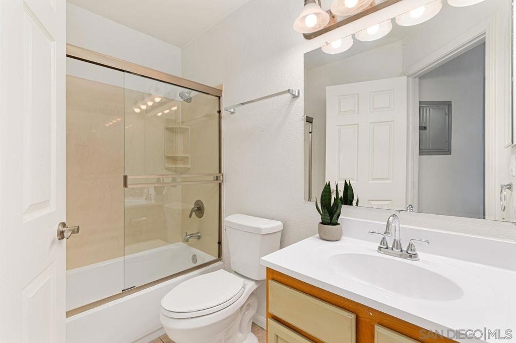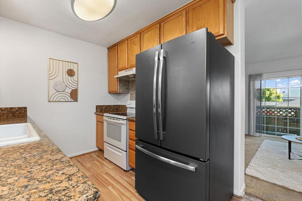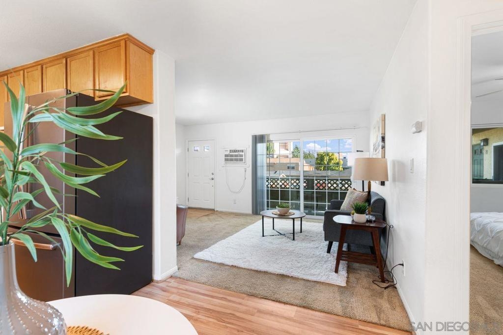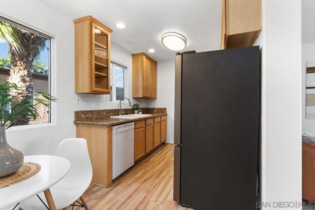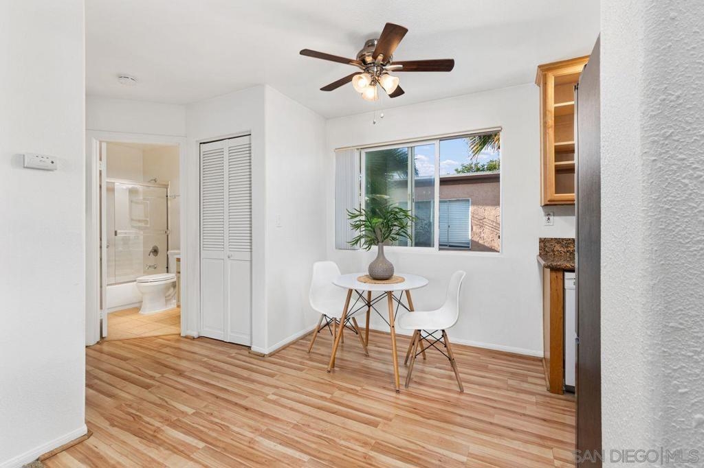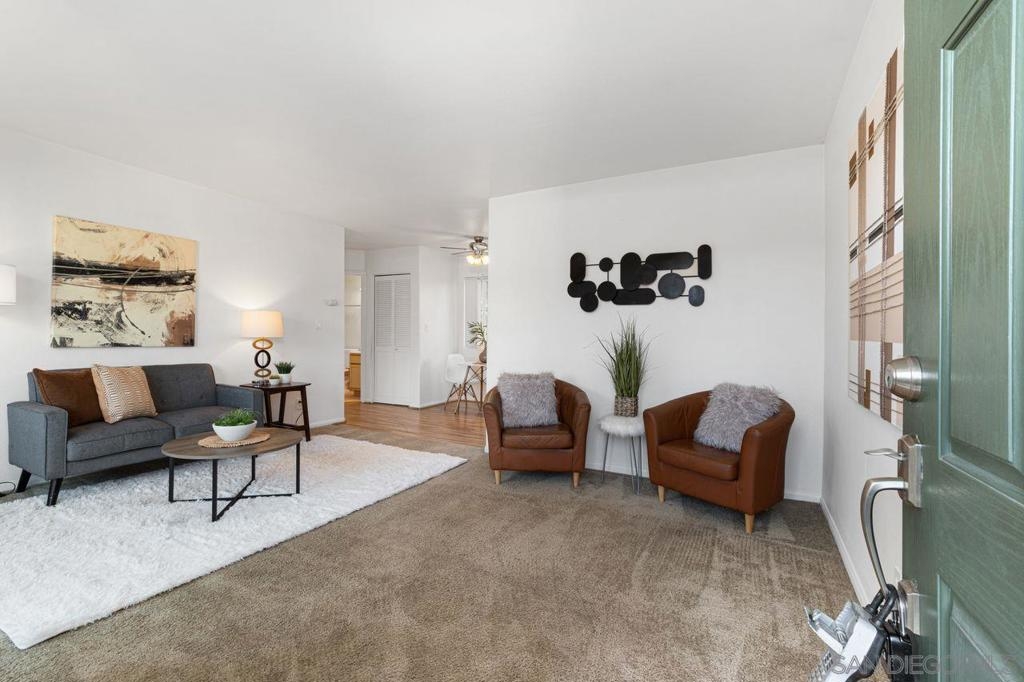 Move in ready upper unit with all the features you are looking for! Explore this move-in-ready, 1-bed condo in downtown El Cajon. Conveniently located near transport links, it offers updated features: kitchen, appliances, bathrooms, and flooring. Enjoy AC, ceiling fans, and in-unit laundry. Plus, gated community with secured parking. Ideal urban living awaits!