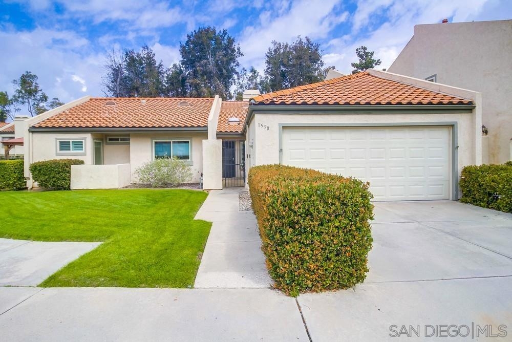 Step into this inviting, move-in ready single-level 3-bedroom, 2-bathroom patio-style end unit, complete with an attached 2-car garage, situated in a highly sought-after location. Enjoy the spaciousness accentuated by high vaulted ceilings and an abundance of windows, inviting in natural light and highlighting the cozy fireplace plus central A/C and heat. The kitchen has been tastefully remodeled, boasting designer cabinetry, quartz countertops, stainless steel appliances, recessed and pendant lighting, along with ceiling fans and wood tile flooring throughout. Retreat to the luxurious primary suite featuring dual vanities, a separate tile surround shower, a relaxing soaking tub, and generous closet space. Convenience meets comfort with extra storage throughout and a private patio offering serene views of meticulously manicured common areas. Beautifully maintained community amenities including a sparkling pool, rejuvenating spa and ample guest parking conveniently located near the front door. Perfectly positioned near shopping, dining and with easy freeway access, this property offers the allure of a single-family home with just one common wall. Don't miss out on the opportunity to experience this exceptional residence firsthand—it's a true must-see!