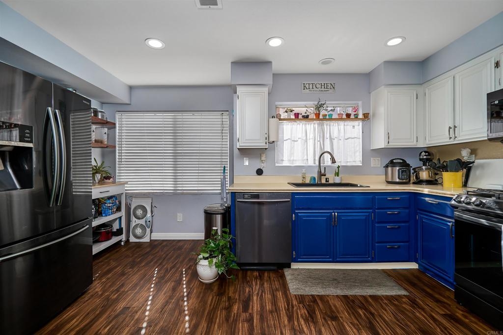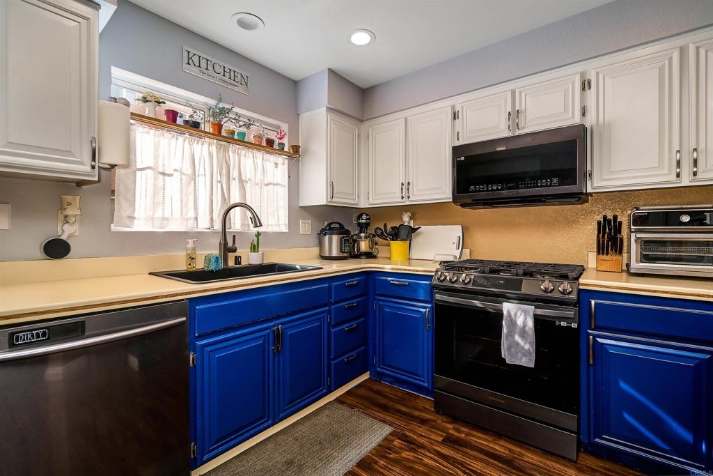 This updated home sits in the desirable The Knolls community and is ready for you! The community features a park-like setting with room for kids and pets to play. The attached garage has additional space for storage and provides the washer and dryer hookups. The home offers brand NEW windows, a large front patio with a sliding glass door. The new laminate wood flooring throughout the main level of the home travels from the front door, past the fireplace in the living room, and into the open-concept kitchen with an adjoining half bath. The kitchen features newer appliances and lots of cabinet space, including bar seating. The laminate wood flooring leads upstairs where a full bathroom and bedroom, and the master bedroom with a private full bath are found. This great community is close to shopping, dining, and freeway access, making it perfect for both work commutes and at-home work situations.