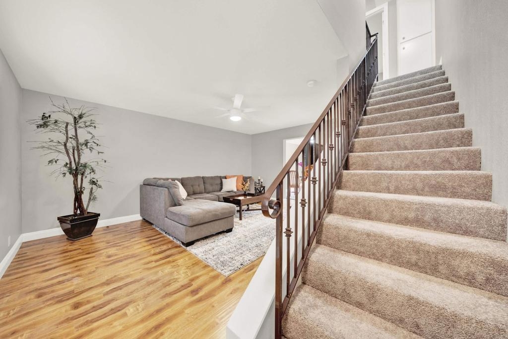 Welcome Home to this beautifully updated townhome in a peaceful, park-like, fully fenced in community. This spacious 2 Bedroom, 1.5 Bath home features gorgeous laminate flooring, granite counter tops, designer touches throughout and in-unit laundry. Enjoy two private patios plus a balcony off one of the bedrooms, ideal for relaxing and/or entertaining. Recent upgrades include new carpeting upstairs, new appliances (warranties will be provided), new ceiling fans, upgraded electrical, fresh paint throughout and custom blinds on all of the windows and sliding glass doors. The well-maintained complex offers a sparkling pool, fitness center, and lush landscaped grounds. Conveniently located near shopping centers, restaurants, coffee shops and with easy freeway access.