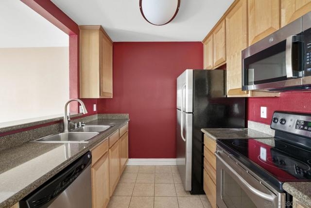 Welcome to this charming 1-bedroom, 1-bath condo located in the gated community The Village Townhomes in El Cajon. This desirable end-unit offers added privacy and features a spacious patio that spans the width of the condo, accessible via sliding doors from the living room and bedroom. Inside, the living area flows seamlessly from a spacious dining area to the kitchen, featuring granite countertops, maple cabinets, and stainless steel appliances, and then to the open living room. The well-maintained community includes a sparkling pool, a grilling area, an exercise room, and a recreation area. The home also includes one assigned parking space inside the gated lot. Conveniently located near shopping, dining, major freeways, and close proximity to schools.