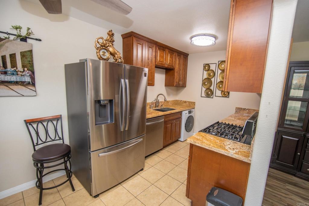 This upgraded condo and detached from all four sides is one of the biggest in the complex. Features new Vinyl floors all over the living room and bedrooms, new kitchen cabinets and granite countertop, new stainless steel stove and fridge, inside unit washer/dryer, new bathroom vanity, new fresh paint and new fans in all rooms. Located at the center of El Cajon minutes away from many restaurants and stores. Less than 5 minutes to the I-8, Cajon Valley Middle School, El Cajon Library, and El Cajon City Park. This is a nice and quiet community to live in and a great opportunity for first time home buyers and investors.