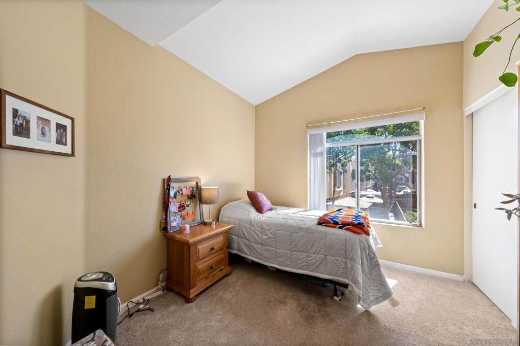 Located in the heart of Rancho San Diego, this FHA/VA approved spacious 2-bedroom, optional loft as 3rd bedroom/office, 2 bath end unit home offers a light and bright living room with 20-foot cathedral ceilings, plenty of windows, fireplace and balcony large enough for your grille. Large master with walk-in closet and en suite bath. Central HVAC, ceiling fans and one car garage with direct access garage. Community playground, gym, large pool, and spa. The laundry closet can accommodate side-by-side appliances. Near highly rated schools, shopping, golf, restaurants, library, and parks.