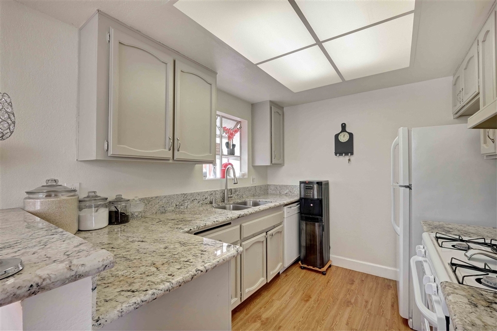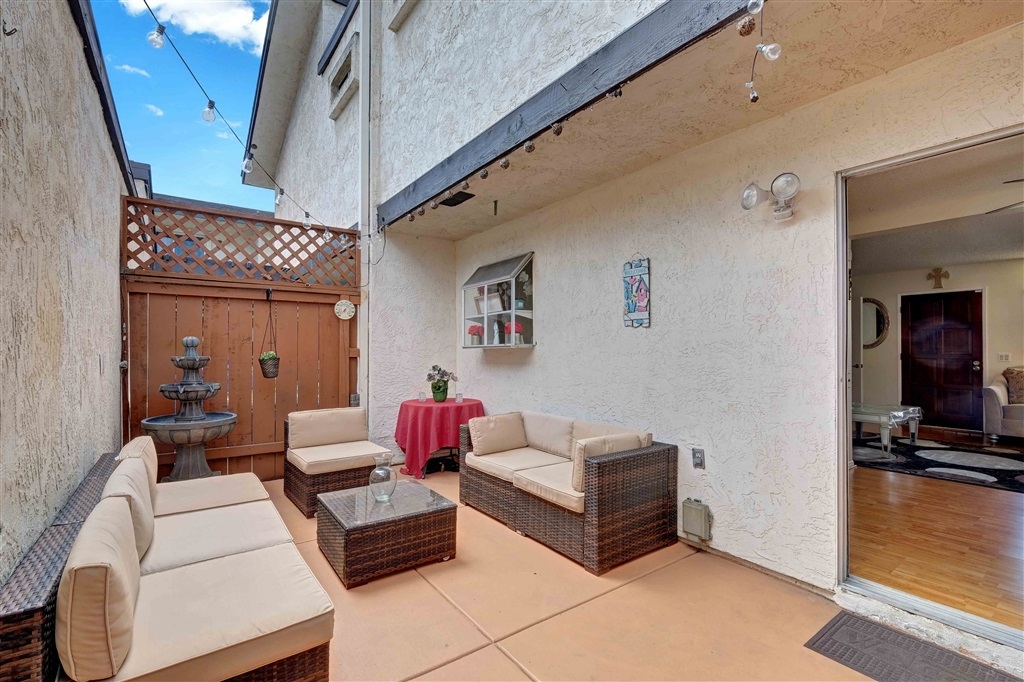 This beautiful two story end unit condo with Laminate flooring Very spacious cozy living room with fireplace. kitchen has brand new granite counter tops. Dining area over look the resort like private patio detached 2-car garage w/ direct access. on the first level, Two bedrooms privately located upstairs .High ceiling great size master bedroom with balcony .full bathroom upstairs and half bath downstairs also with new granite counter tops. Laundry is stackable closet ,centrally located w/ easy freeway acc. Neighborhoods: Villa Madera Other Fees: 0 Sewer: Sewer Connected