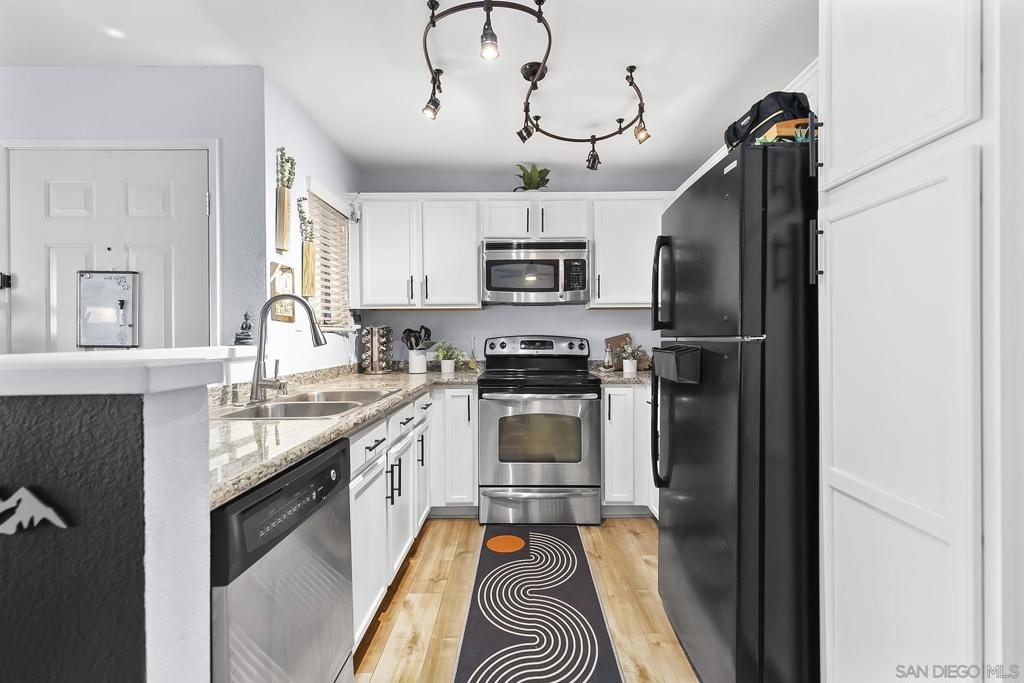 WELCOME TO THIS CHARMING, BEAUTIFULLY UPGRADED 2 BEDROOM, 2 BATHROOM CONDO IN HIGHLY SOUGHT-AFTER RANCHO SAN DIEGO! 4.9% ASSUMABLE VA LOAN!! THIS GORGEOUS GROUND-FLOOR UNIT IS PERFECTLY TUCKED AWAY FOR PEACEFUL PRIVACY IN THE VILLA MONTE VINA COMMUNITY. STEP INTO THE SPACIOUS LIVING AREA, WHERE LUXURY VINYL PLANK FLOORING SHINES UNDER NATURAL LIGHT FROM DUAL-PANE WINDOWS AND SLIDERS. THE UPGRADED KITCHEN BOASTS STAINLESS STEEL APPLIANCES, NEWER CABINETRY, AND STUNNING GRANITE COUNTERTOPS THAT MAKE COOKING A JOY! RELAX IN THE LARGE MASTER SUITE, COMPLETE WITH A PRIVATE BATHROOM FOR YOUR COMFORT. ENJOY YOUR MORNING COFFEE OR EVENING DRINK ON THE CHARMING PATIO, OR HEAD TO THE RESORT-STYLE AMENITIES, INCLUDING A SPARKLING POOL, JACUZZI, AND OUTDOOR BARBECUE AREA WITH SEATING. WITH LOW HOA FEES, IN-UNIT FULL-SIZE LAUNDRY, AND A WALKABLE NEIGHBORHOOD CLOSE TO GROCERY STORES, TARGET, RESTAURANTS, AND A MOVIE THEATER, THIS HOME OFFERS A TRULY UNMATCHED LIFESTYLE OF CONVENIENCE AND COMFORT. DON’T MISS OUT ON THIS RANCHO SAN DIEGO GEM!